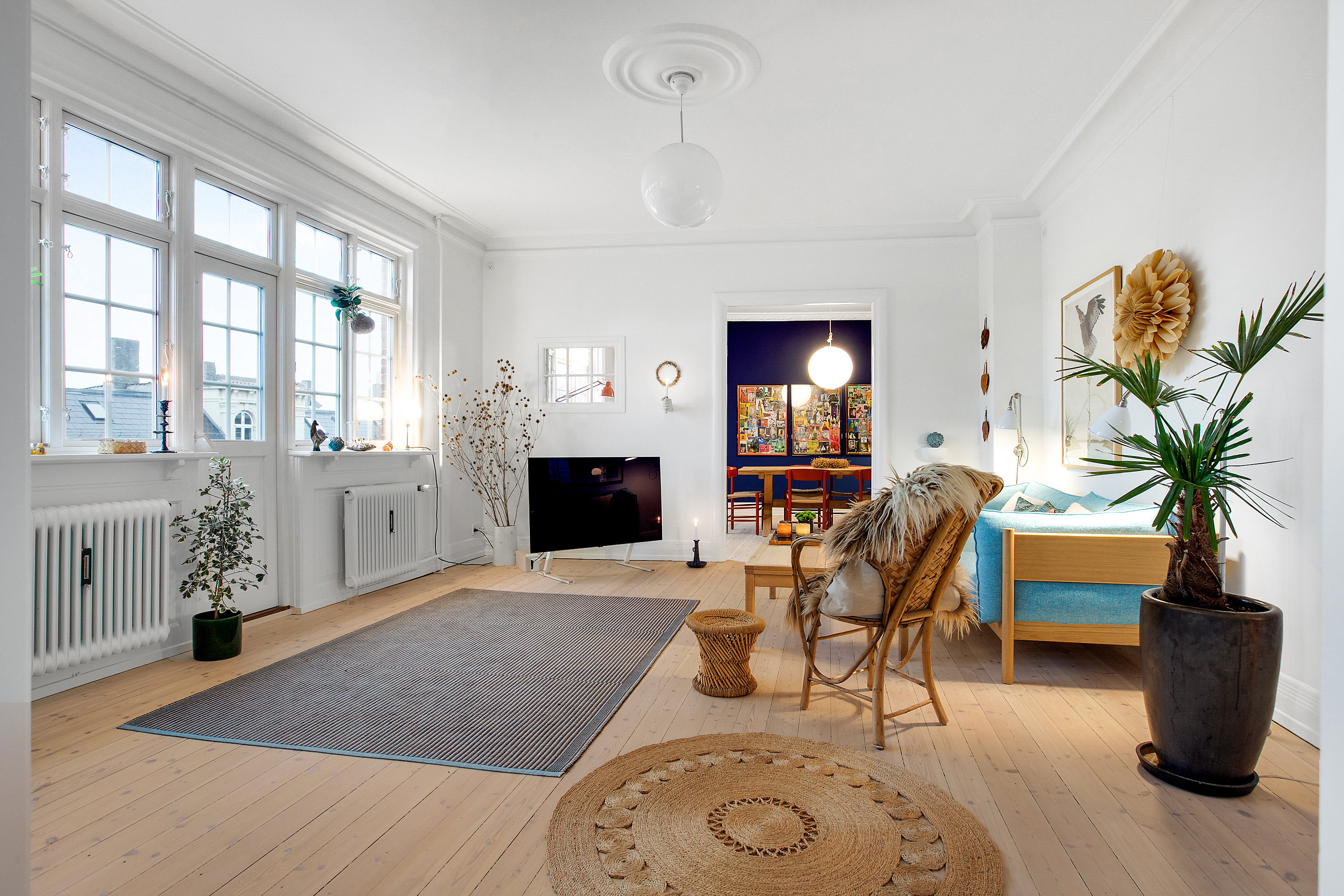 Med 155 højloftede kvadratmeter er pladsen god. Efter en totalrenovering med fokus på liebhaverisk kvalitet er det herskabelige udtryk ikke bare bevaret, men også taget på en rejse ind i fremtiden. Lejlighedens altan er orienteret mod sydvest. Altanen vender ind mod ejerforeningens store fælleshave, der fungerer som et socialt samlingspunkt for beboerne i den præmierede ejendom fra 1912.