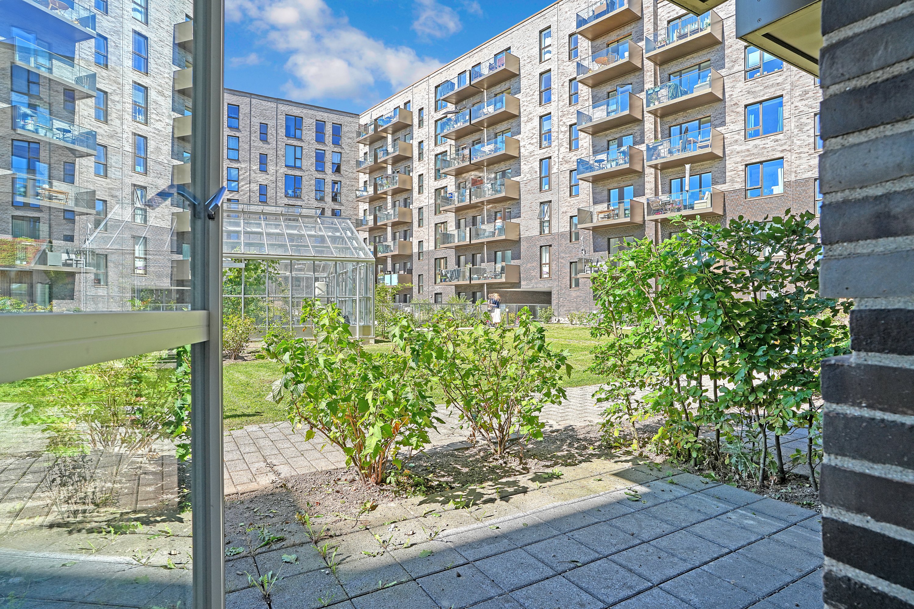 Ejendommen, hvor denne lækre lejlighed er beliggende, er opført i 2020 og præsenterer en flot og moderne arkitektur med kvalitetsmaterialer og skønne rekreative fællesområder, fælles væksthus samt parkeringskælder med mulighed for tilkøb af privat parkeringsplads.