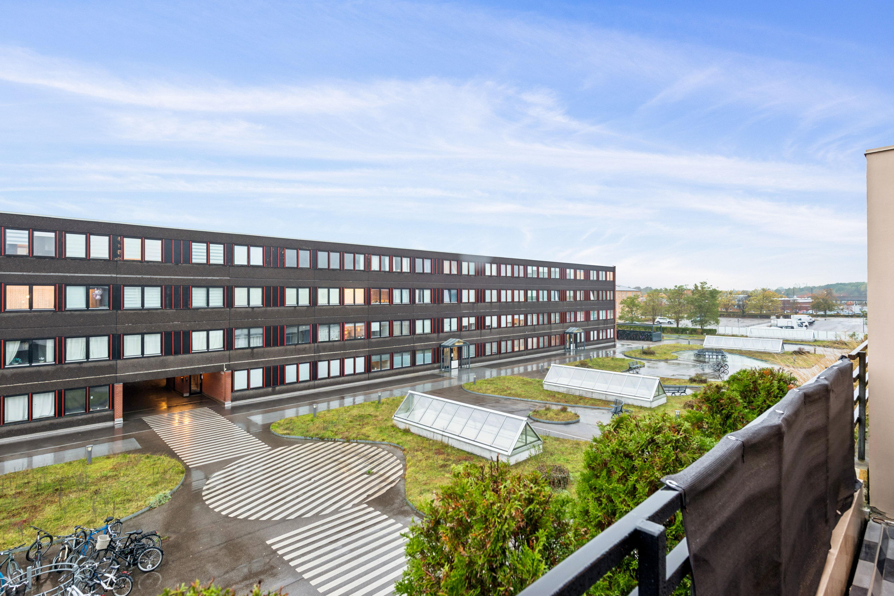 Ejendommen, hvor I får hjemme, stod færdigbygget i 1972, og I skal op på anden sal. Her åbner hoveddøren ind til en pæn og moderne lejlighed med en utrolig praktisk planløsning. Til den ene side har I tre gode værelser, hvor børn og voksne kan sove trygt, foruden et gæstetoilet og et flisebadeværelse. Resten af hjemmet består af en rummelig stue og et nydeligt køkken, hvor der er alt i hårde hvidevarer og en hyggelig spisekrog. I stuen er der plads til en helt store hjørnesofa og måske et arbejdsbord eller et legehjørne? Et bredt vinduesparti lader lyset strømme indenfor, og åbner I altandøren, kan I træde ud på en overdækket og vestvendt altan, hvor I kan nyde lune eftermiddage og et smukt aftenlys.