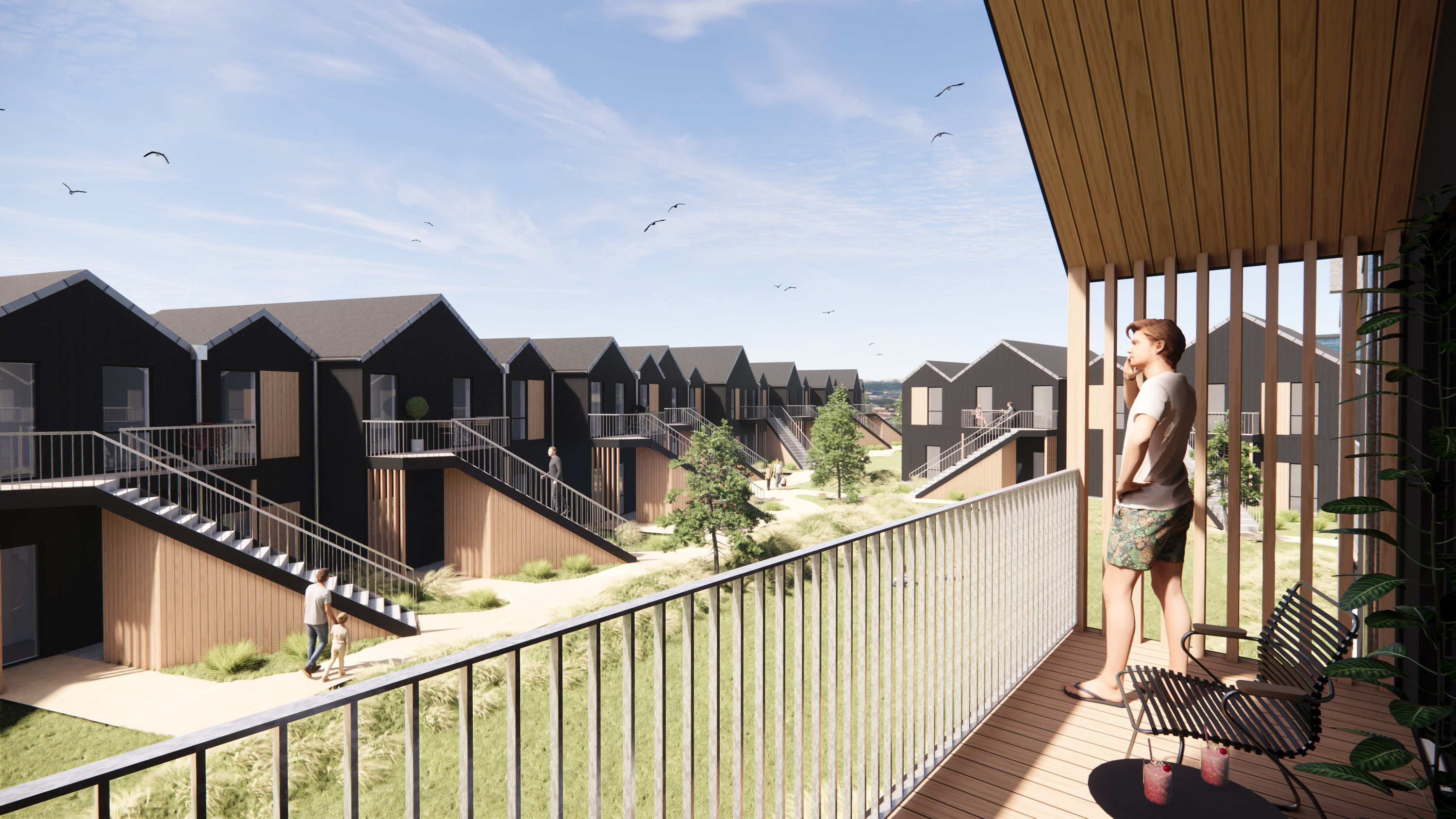 Materialerne i byggeriet og lejlighederne er meget nøje udvalgte - især ud fra at de er så vedligeholdelsesfrie som muligt for området ved Vesterhavet.