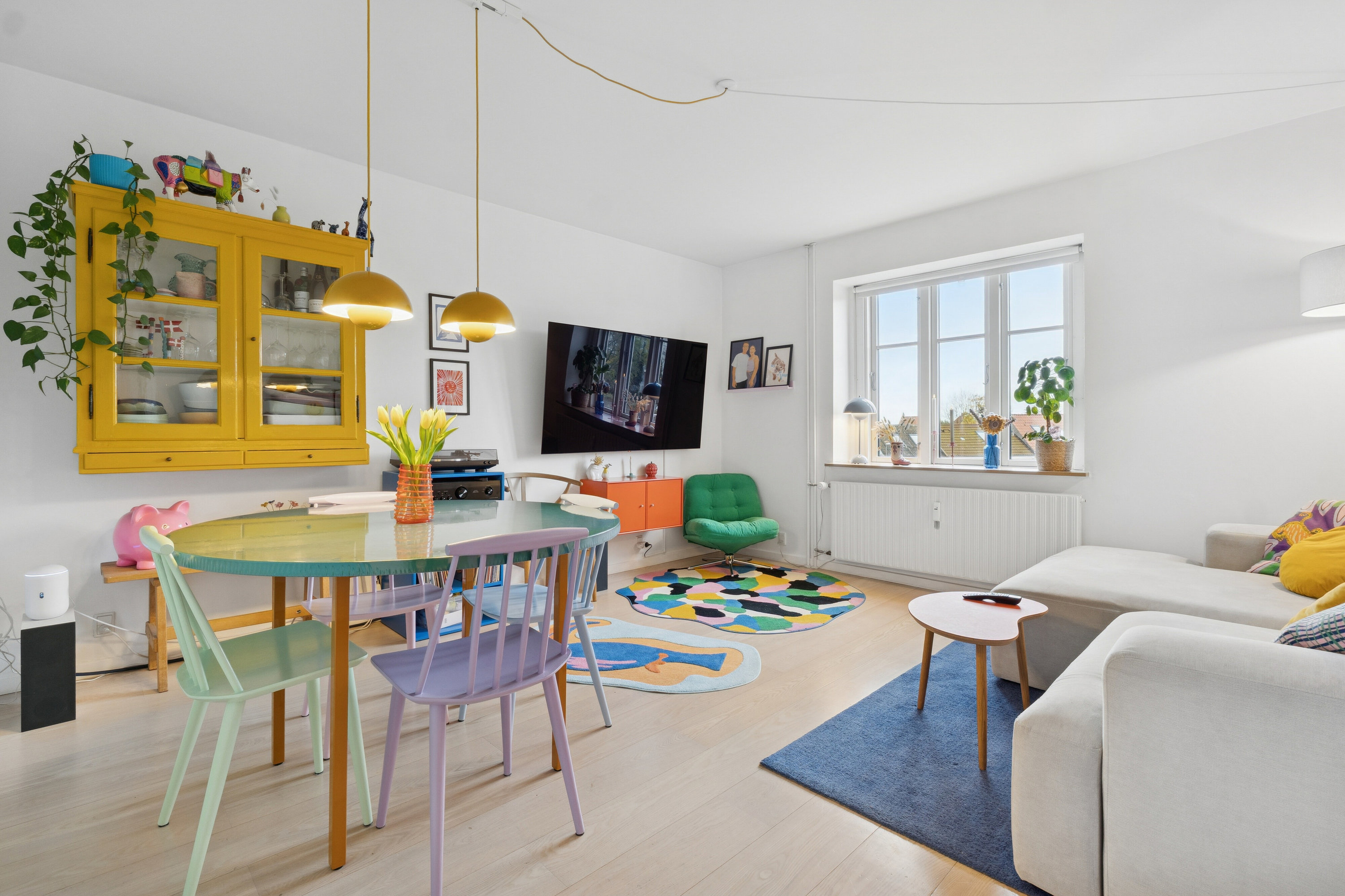 Hjemmet byder på en indbydende stemning med lyse rum, højt til loftet og en planløsning, der udnytter hver eneste kvadratmeter optimalt.
