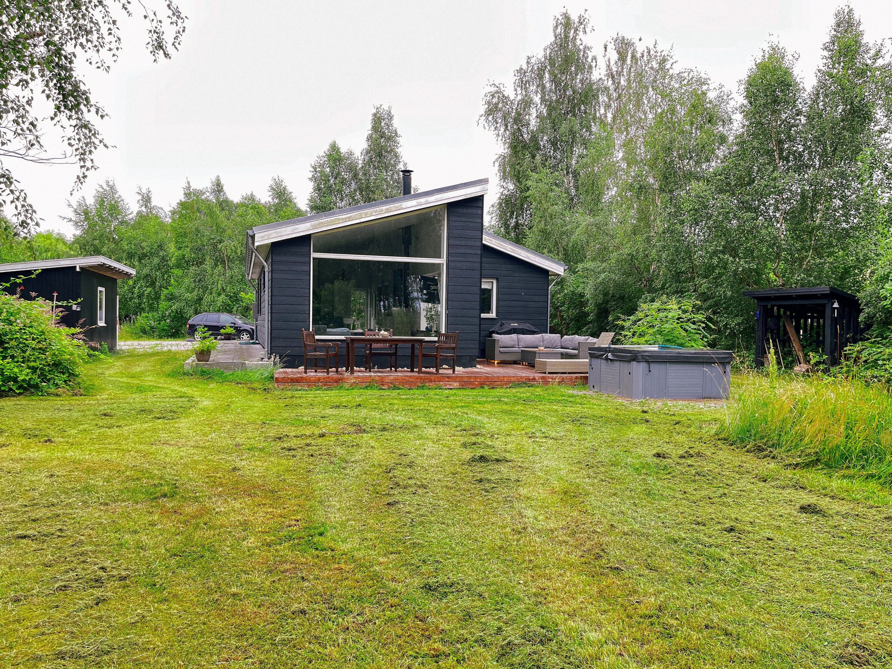 Udenfor venter jer en skøn og parklignende have på 2.437 kvadrameter, der flittigt besøges af råvildt, harer og fasaner. På gode træterrasse kan I nyde solrige dage samt i den lækre udendørs spa eller slentre ned til vandet og lade jer berolige af bølgesvulpet langs kysten. Tilhørende huset er derudover et godt udhus på 20 kvadratmeter, med rigelig plads til at havemøblerne kan overvintre eller lignende.
