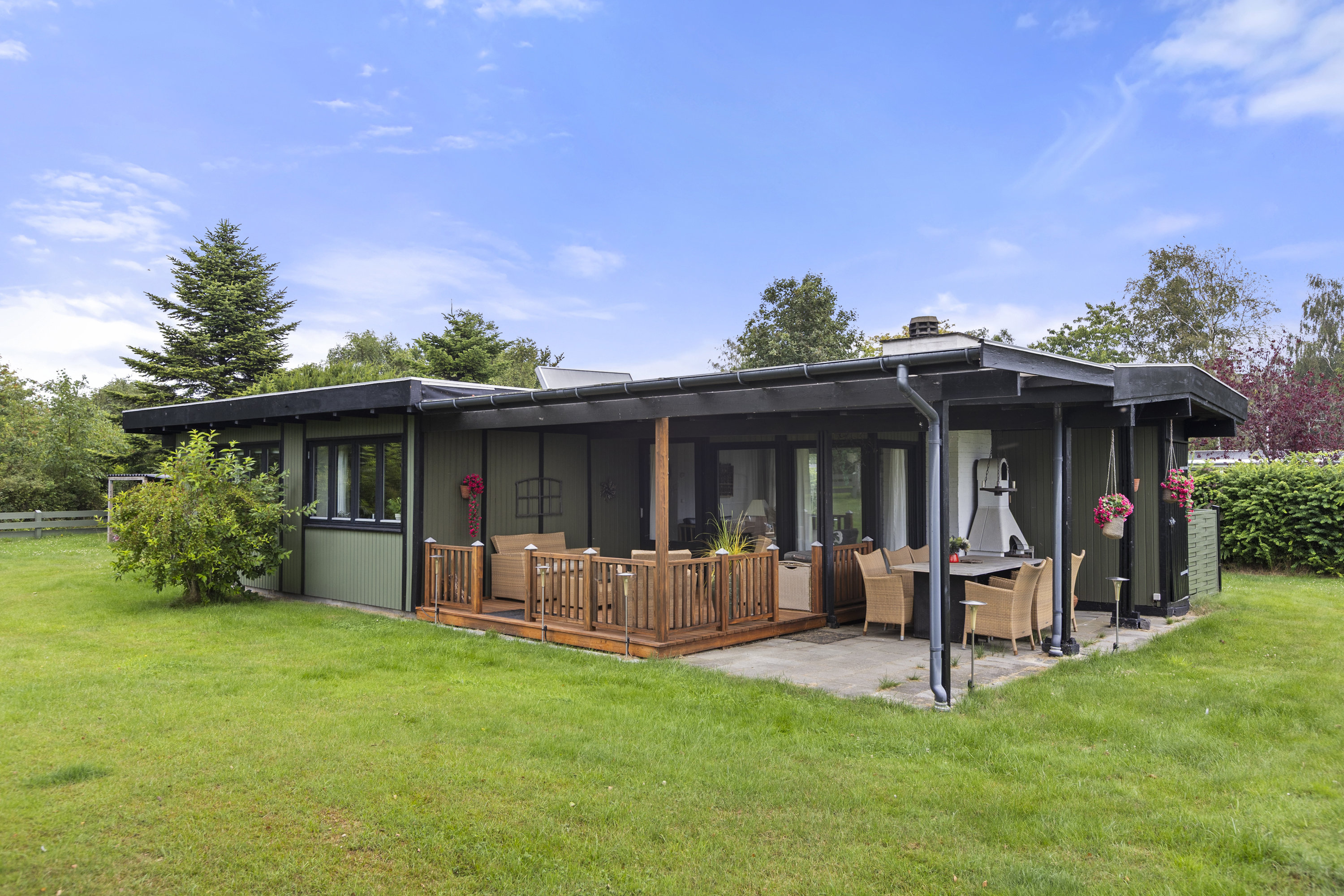 En af ejendommens absolutte perler er den overdækkede terrasse, som forlænger sommerhyggen til de sene aftentimer. Herfra kan du nyde den skønne udsigt over søen og lade dig inspirere af naturens skønhed, mens fuglene synger i baggrunden. Terrassen gør det muligt at være udenfor, uanset vejret. Grunden på hele 960 kvadratmeter tilbyder rigelig med plads til både leg og ro. Her er der potentiale for at skabe jeres helt eget lille paradis med mulighed for havedrømme og legeaktiviteter for de små eller boldspil på plænen.