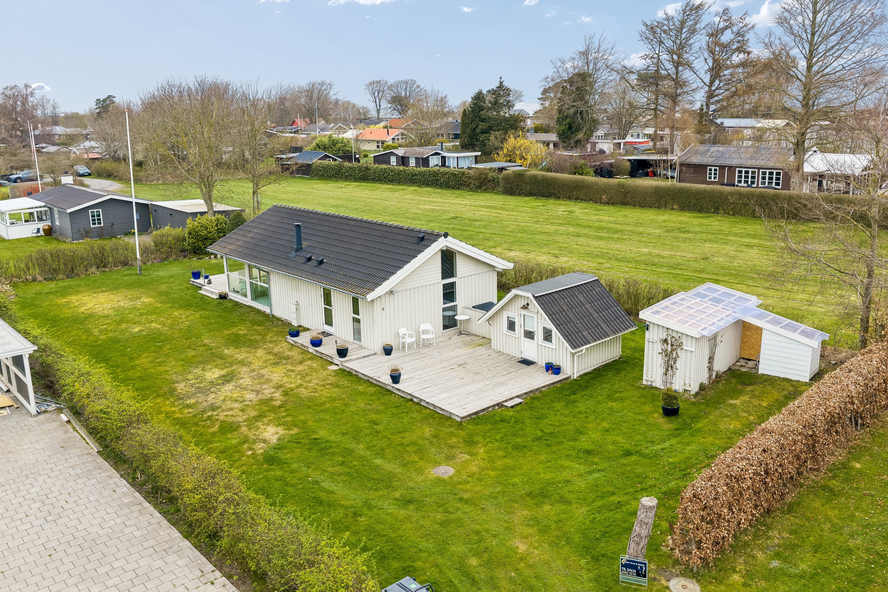 På Nørholmsvej 4 udbyder Estate Tarup & Næsby nu en feriedrøm af et fritidshus, for med to soveværelser og anneks, sol på havens terrasser og en badestrand i ‘baghaven’ er rammerne sat for mange hyggelige feriestunder med familien. Fra huset er der blot 400 meter til vandet, så stranden bliver en naturlig del af jeres kommende ferier – hvad enten det er til sommerdage med badning, en frisk vinterdukkert eller lange gåture langs kysten mod Enebærodde. Fritidshuset ligger desuden kun 25 minutter bag rattet fra Odense, hvor indkøbene kan klares på halvvejen i Otterup. Huset ligger tilbagetrukket fra grusvejen og ud til et åbent, grønt areal. Haven kræver minimalt havearbejde, og den vender mod flere verdenshjørner, så solen kan nydes hele dagen. To terrasser på hver sin side af huset giver gode muligheder for både friskfangede frokoster under åben himmel og afslapning i solen, og derudover er der et anneks med gode anvendelsesmuligheder samt et skur til opbevaring. Boligen rummer 67 overskuelige og veludnyttede kvadratmeter, hvor køkkenet, spisepladsen og stuen er samlet i ét åbent opholdsrum. Loftet er ført til kip, og en stor vinduesvæg trækker lyset helt ind og skaber et rum, hvor inde og ude smelter sammen i rigtig sommerhusstil. En hems bidrager med ekstra soveplads, og hertil kommer to soveværelser samt et rummeligt badeværelse med plads til vaskesøjle.