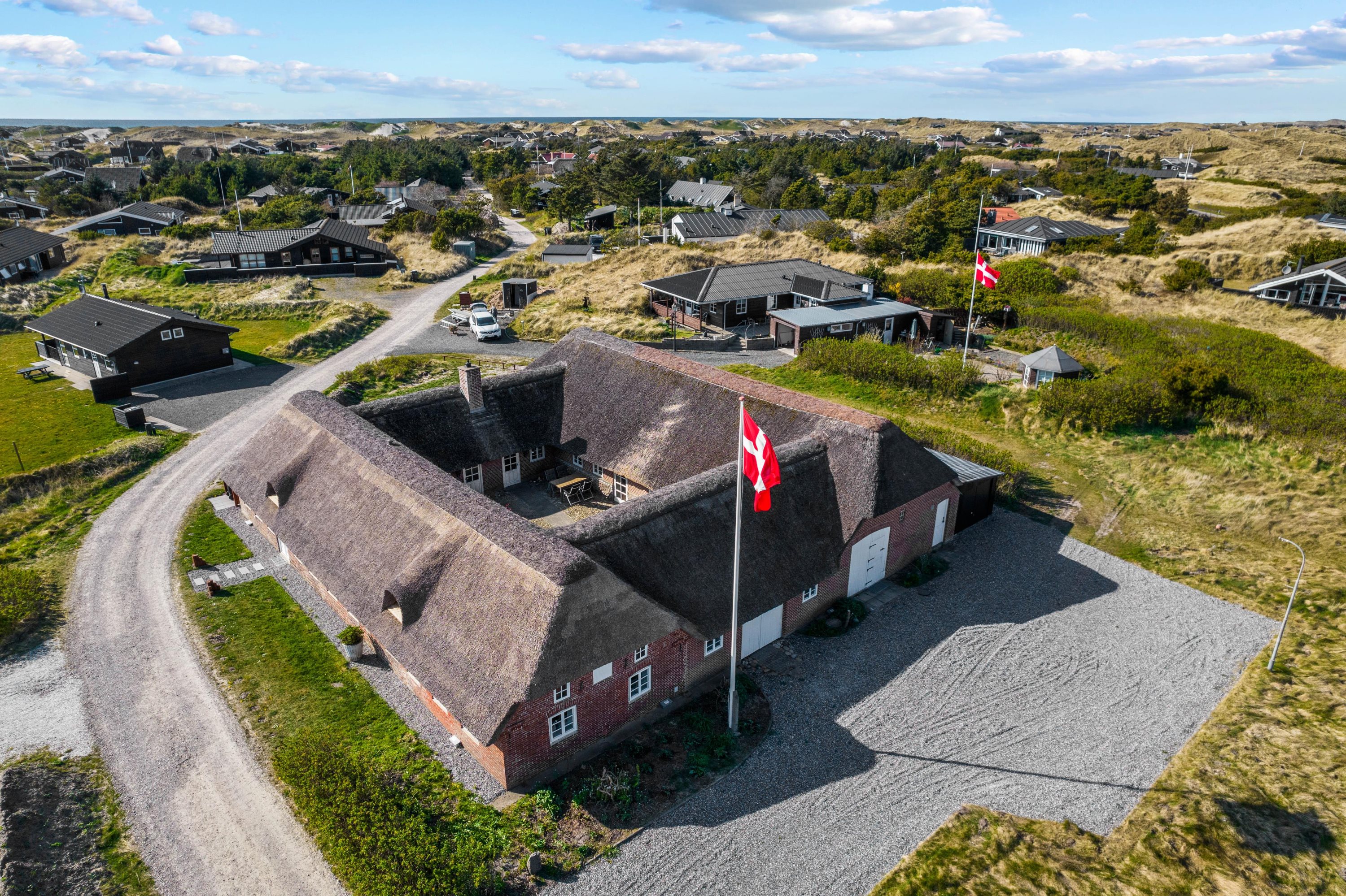 Området: Ejendommen er beliggende let tilbagetrukket fra Houvig Klitvej. Der er ca. 500 meter via grusvej og sti til den brede hvide sandstrand, med de historiske bunkere og de blå bølger ved Vesterhavet, og ca 2 km.til 18 hullers golfbane, og 2 km. til centrum af Søndervig, med det pulserende feriemiljø med masser af butikker, spisesteder og et af nordeuropas største vandlande,samt 3 km. til Vestkystens populære gårdbutik med luksus- og specialprodukter og råvarer.