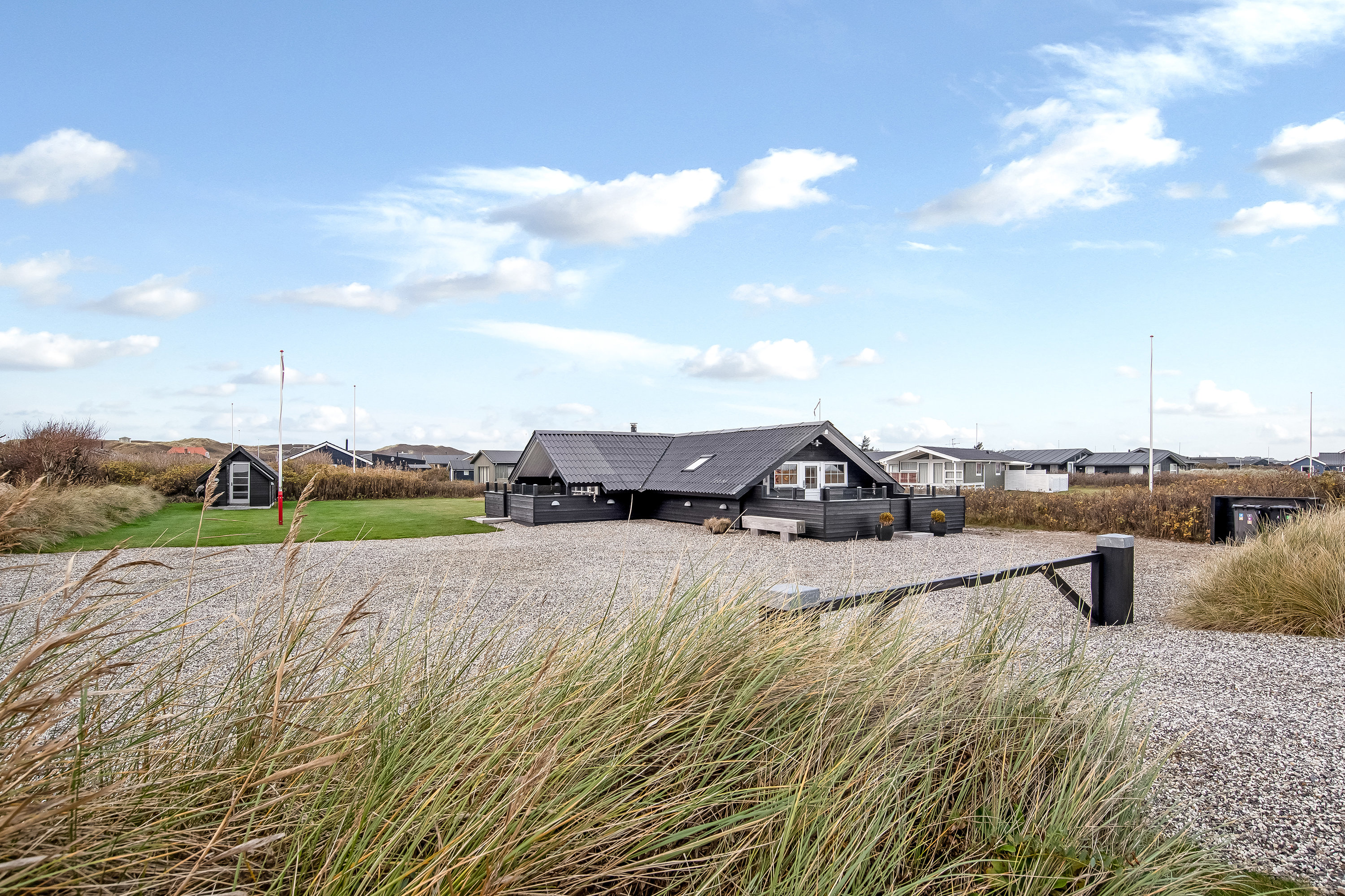 Området: Hvis du vil shoppe, fiske, spille golf eller blot slentre omkring og nyde Vesterhavet og spise softice eller god mad, så er Søndervig lige stedet. Her er næsten alt hvad hjertet kan begære af aktiviteter og afslappet feriestemning, hyggelige specialbutikker og gode spisesteder, samt ikke mindre end 2 supermarkeder. Fra grunden er der er en herlig udsigt til klitterne, og til Lalandia Aqua-Dome er der kun 3-400 meter.