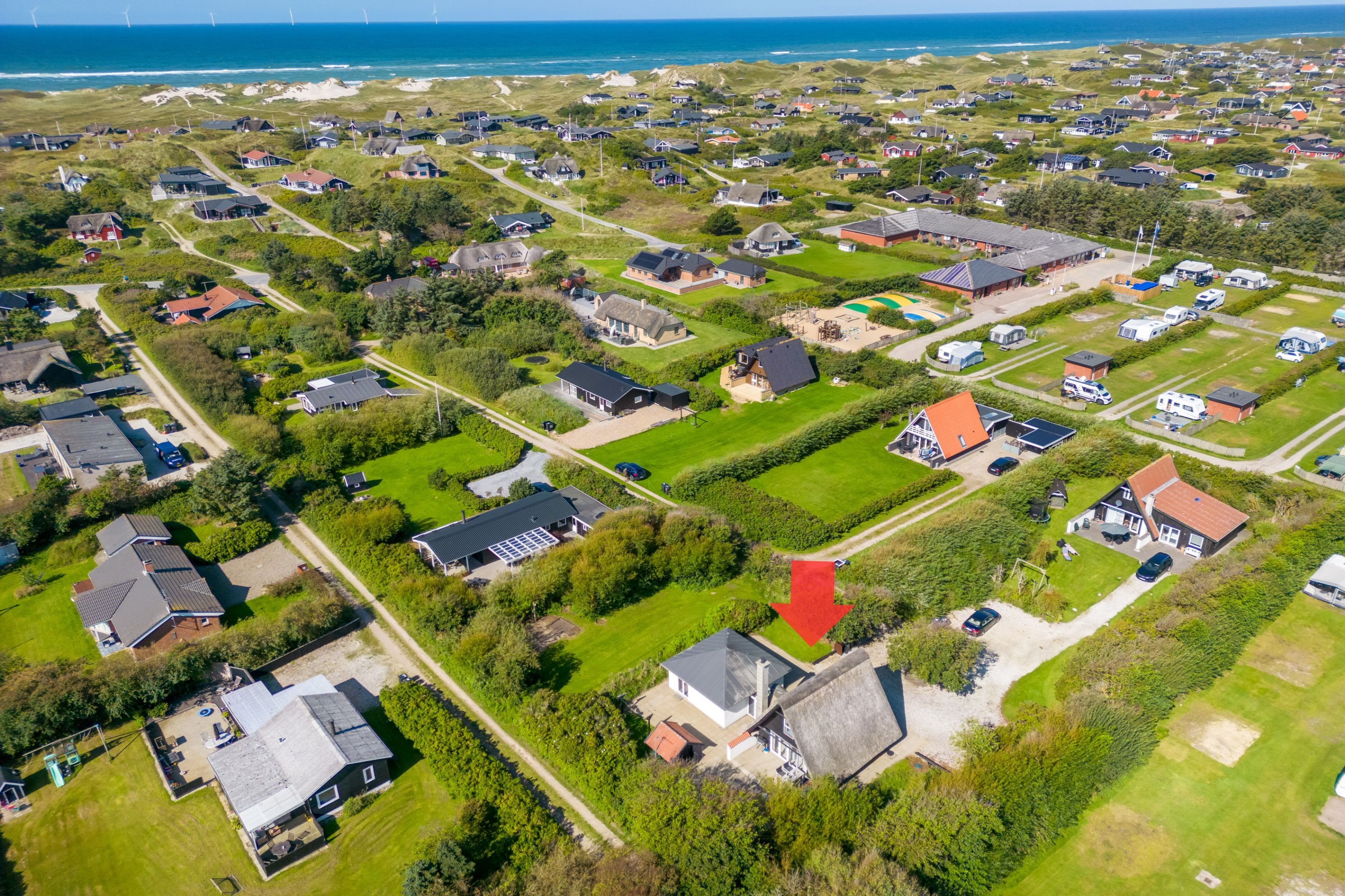 Velbeliggende sommerhus i Søndervig for enden af lukket stikvej, hvor der er mulighed for at bygge 180 m2 + udhuse