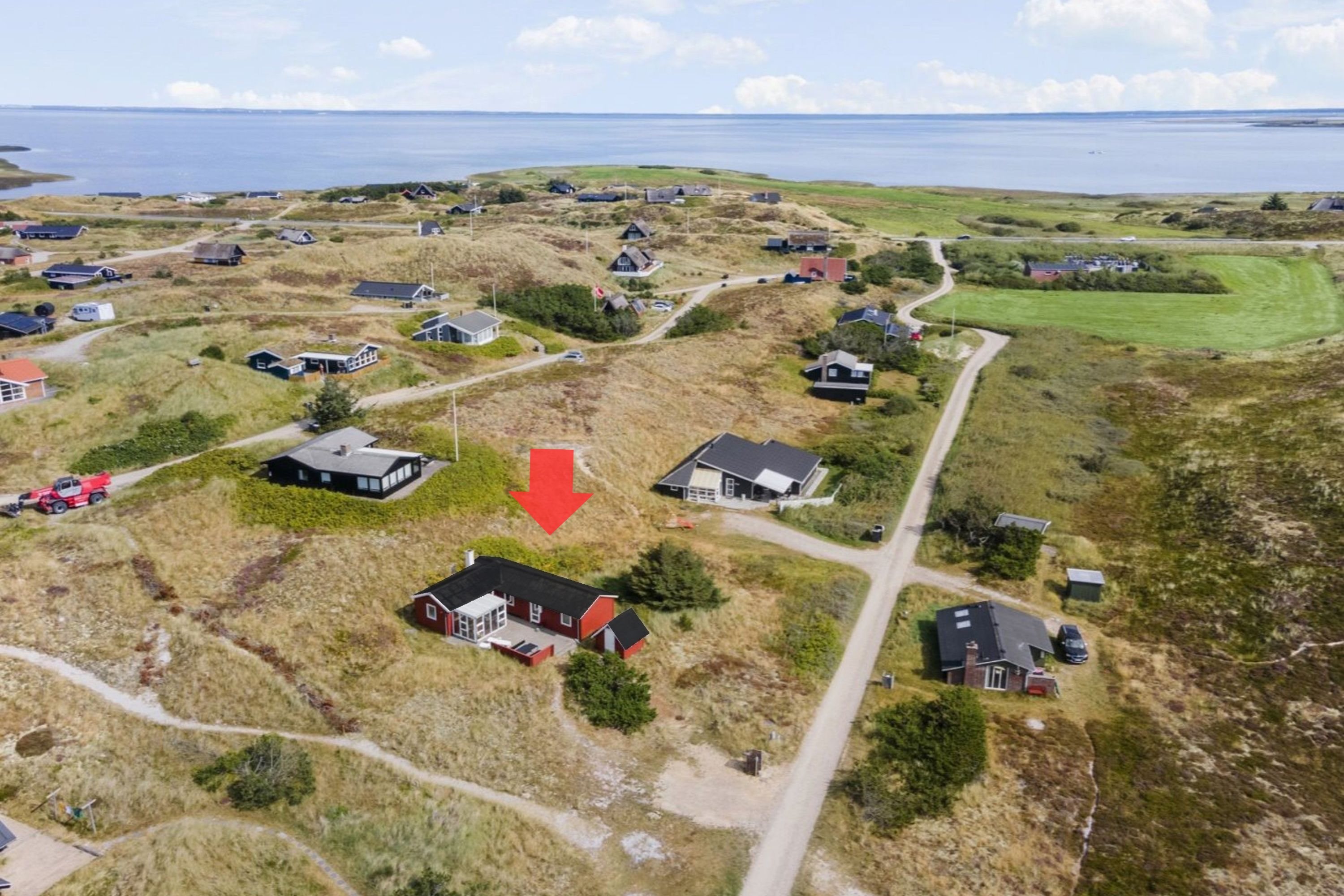 Huset: Dette virkelig hyggelige, lyse og charmerende fritidshus byder på en skøn atmosfære og en fremragende beliggenhed. Huset er nydeligt moderniseret og blev indvendigt nymalet i 2021, hvor der bl.a. kom nyt køkken, delvist nye møbler samt en varmepumpe til. Den oprindelige bolig fra 1962 har i 2024 desuden fået en delvis ny, smuk træfacade, og fremstår i dag med både nymalet facade, nymalet eternittag og hvide plast vinduer over det meste. Ejendommen ligger på en helt vidunderlig, 1.895 kvm stor og markant kuperet lyngklædt naturgrund i det eftertragtede sommerhusområde Skodbjerge. Herfra er der en imponerende udsigt over Ringkøbing Fjord, det fredede naturområde og klitterne. Til huset hører både en pragtfuld og meget læfyldt delvist overdækket østvendt terrasse og en skøn sydvestvendt terrasse, hvor stilheden og den betagende, uspolerede udsigt over det store naturområde mod syd kan nydes fra første parket. Her kan man følge solen fra de tidlige morgentimer i øst, til den langsomt forsvinder bag klitterne mod vest på de lune, lyse sommeraftener. Endvidere er her også en fantastisk dejlig havestue, der kan nydes på alle tider af året, og i den kolde tid nemt kan opvarmes med en terrassevarmer. Her er der læ for vinden og mulighed for masser af dagslys og sol, og en skøn og uspoleret udsigt mod klitterne.