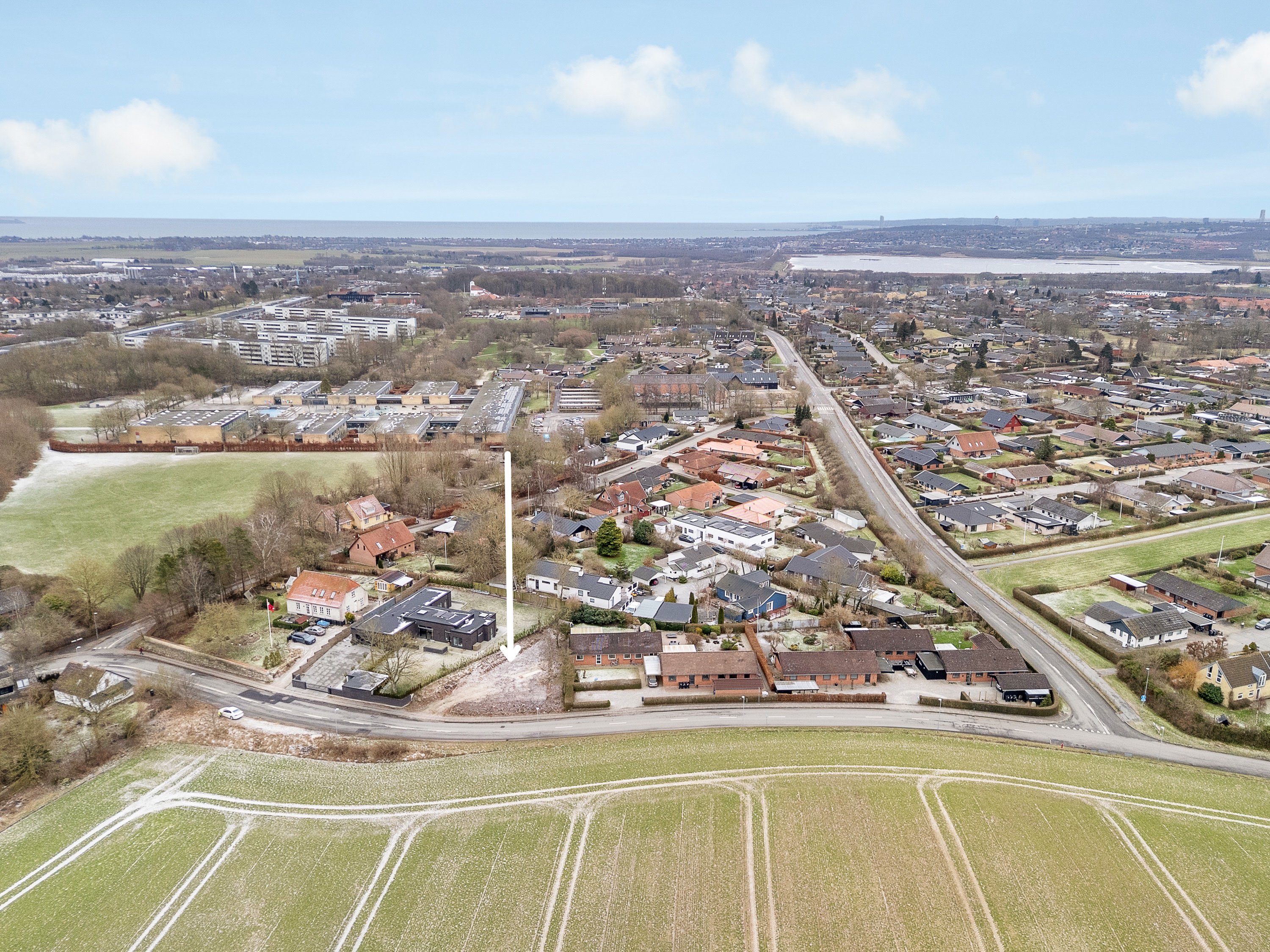 Grunden er attraktivt beliggende med direkte nærhed til naturskønne, åbne marker, derindbyder til hyggelige gåture og udeliv. Samtidig er hverdagen nem og bekvem med blot ca.400 meter til skole samt kort afstand til daginstitutioner, indkøbsmuligheder, offentligtransport og byens øvrige faciliteter.
