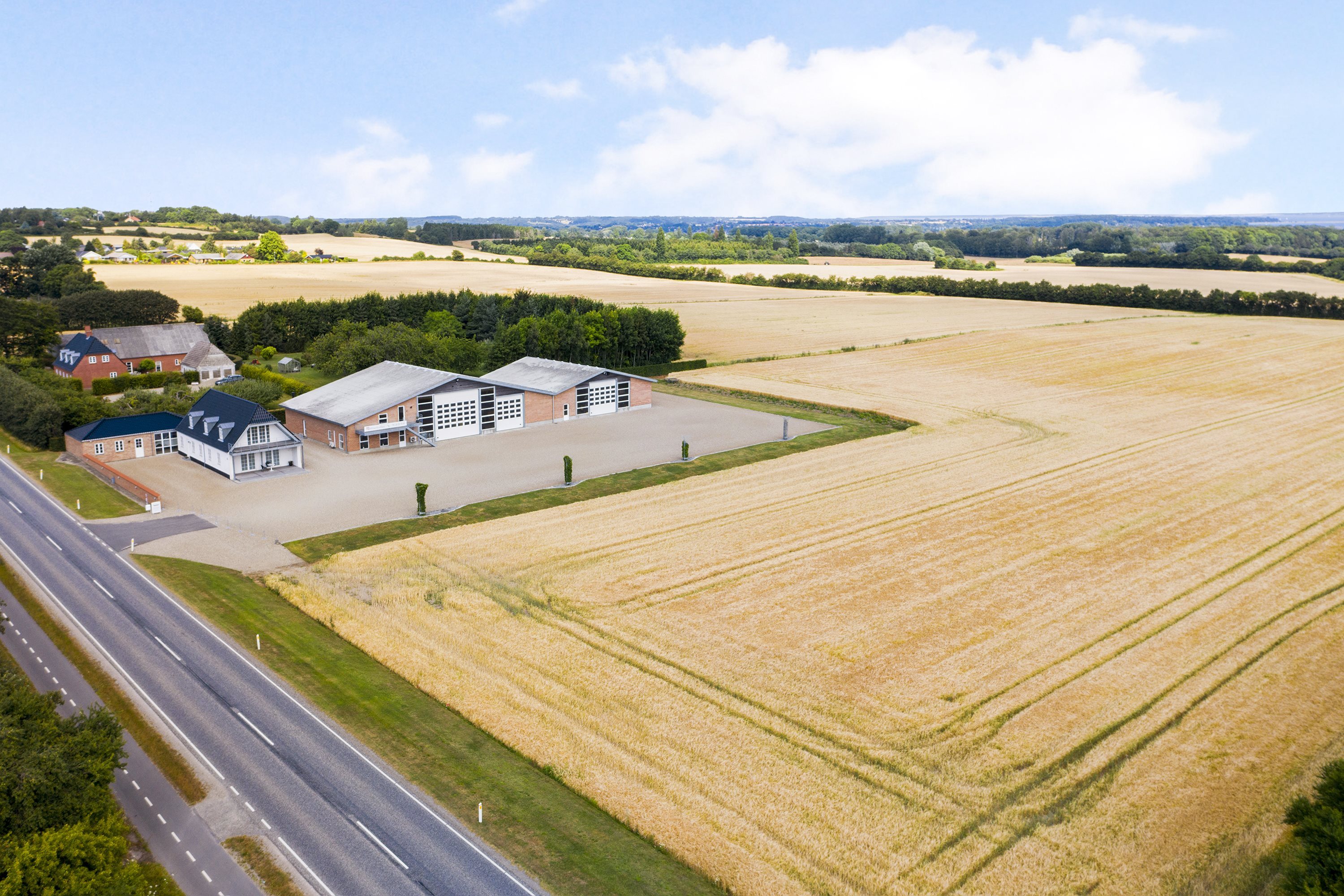 Huset errenoveret og tilbygget siden 2010, mens de to haller på 1.146 m2 er opført i henholdsvis 2008/2010.