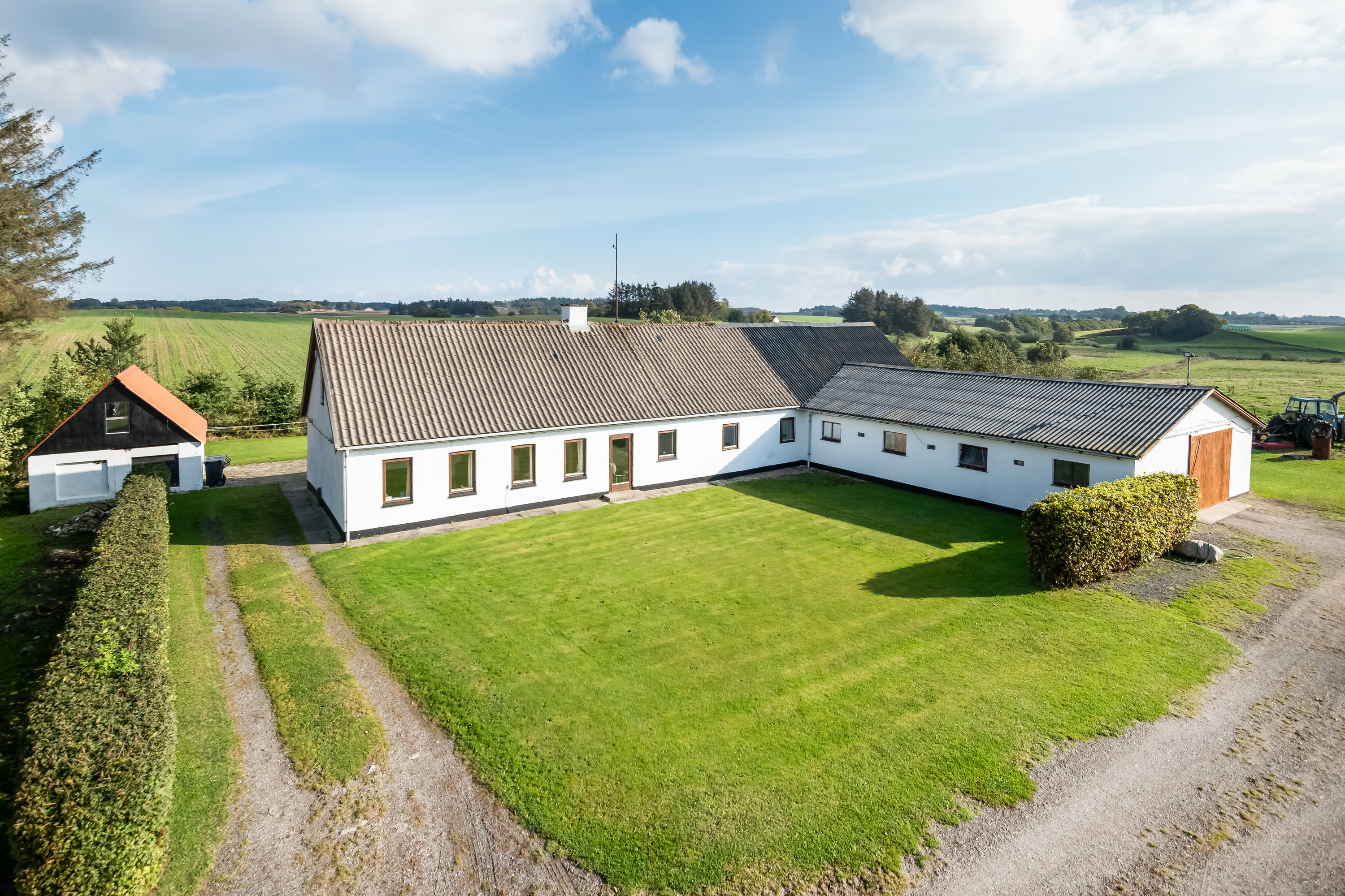 Udenfor venter et skønt udeareal med plads til udfoldelse, have og dyreliv. Her er der ro, frisk luft og udsigt til de åbne marker – et sted, hvor naturen bliver en del af hverdagen.