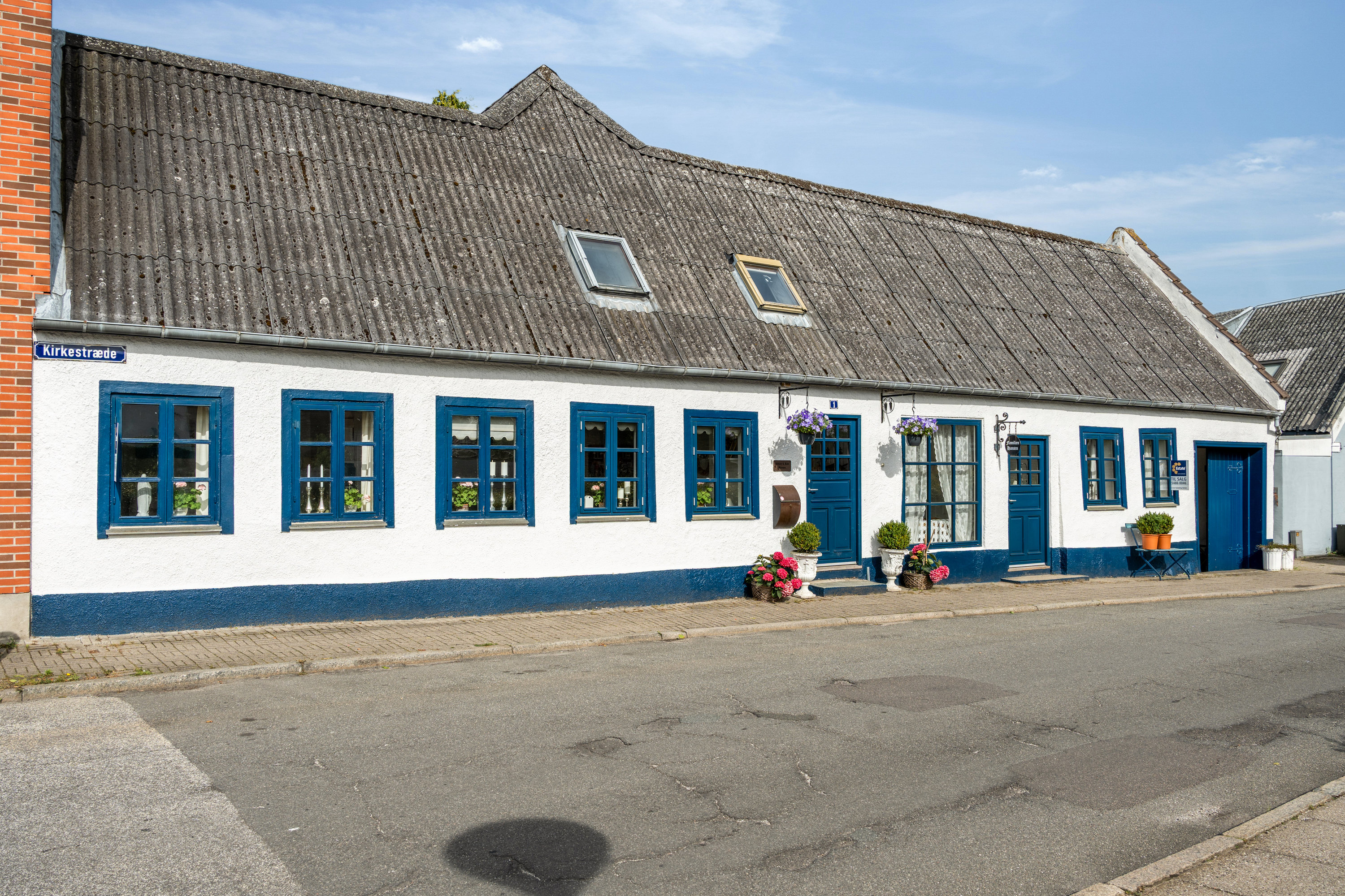 Velkommen til Kirkestræde 1 – et sjældent udbudt byhus midt i Sakskøbing med masser af karakter, charme og plads. Ejendommen ligger helt centralt, blot få skridt fra torvet, kirken og lystbådehavnen – og har med sin hvidpudsede facade, blå vinduer, sokkel og port et nærmest postkortagtigt udtryk. Sakskøbing er en af Lollands ældste byer med købstadsstatus siden middelalderen og en lang tradition for handel, håndværk og hyggeligt byliv.