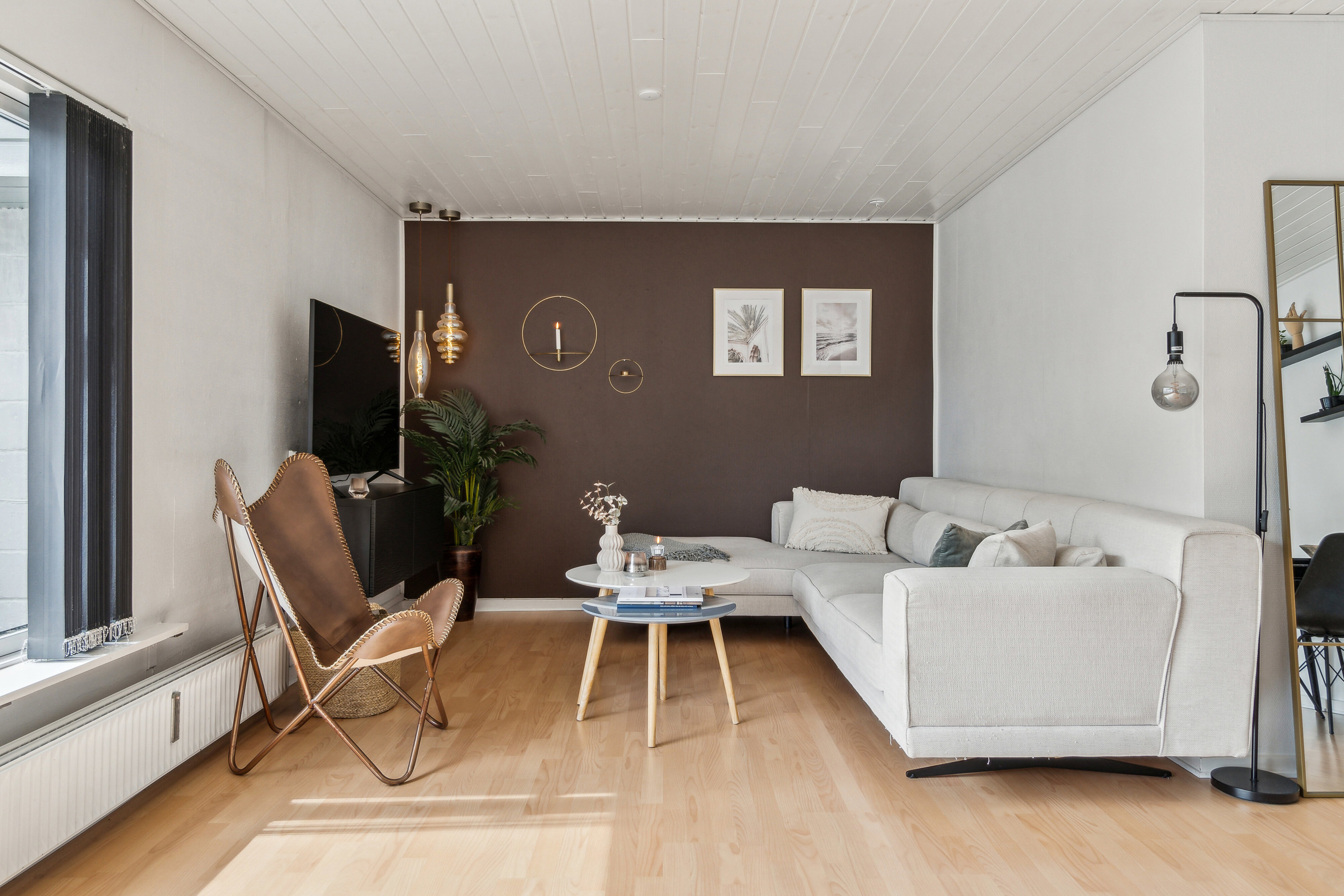 Når I træder indenfor, mødes I af en entré med plads til overtøj og sko. Boligen byder på et godt soveværelse og et ekstra værelse, der med fordel kan bruges som børneværelse, kontor eller gæsteværelse. Det rummelige badeværelse er praktisk indrettet og har plads til både vaskemaskine og tørretumbler.
