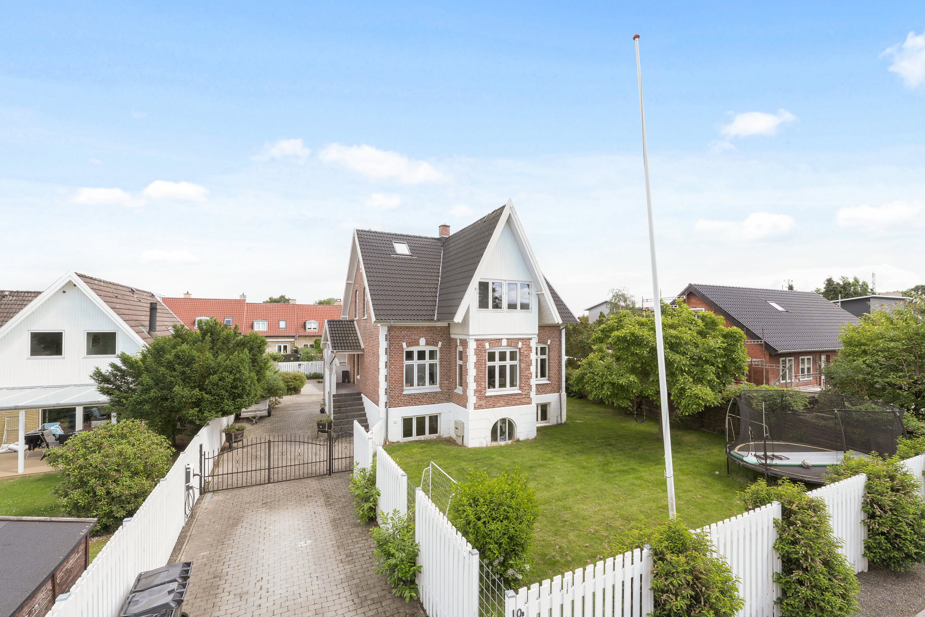 Du træder indenfor i hall-lignende entré med smukt trappeløb til 1. sal og åben forbindelse ned til underetagen. Fra entréen træder du ind i åben fordelingsgang med adgang til det meget afgørende gæstetoilet i stueplan, som sikrer, at man i dagligdagen og husets gæster ikke skal valfarte op eller ned for at komme på toilettet. Lige frem træder du ind i den herskabelige dagligstue med den mest fantastiske stemning med de klassiske detaljer, som smukke plankegulve, højt til de pudsede lofter med stuk og rosetter og endelig den dragende karnap, der bidrager med godt lysindfald. Det store køkken/alrum ligger i forbindelse med stuen og her får du et lækkert stort Invita-køkken med gulvvarme og igen masser af lys og højt til loftet. I stueplan finder du også et fint værelse, som kunne være et oplagt gæsteværelse/kontor. På 1. sal træder du op på fordelingsrepos og glemmer straks alt, du troede du vidste om 1. sal med skrå vægge. Fordi huset har så stort et grundplan er du på denne 1. sal ikke generet af skrå vægge. Der er masser af fornemmelse af luft. Du får på 1. sal tre store lyse værelser og et kæmpe badeværelse. Kælderen eller rettere underetagen er et kapitel helt for sig. Her er der virkelig brugt blod, sved og penge. Der er gulvvarme i en del af kælderen, der er drænet rundt om og der er masser af lys. Der er således virkelig tale om beboelige kvm af højeste kvalitet. Du får tre virkelig gode store og lyse rum plus et stort badeværelse.