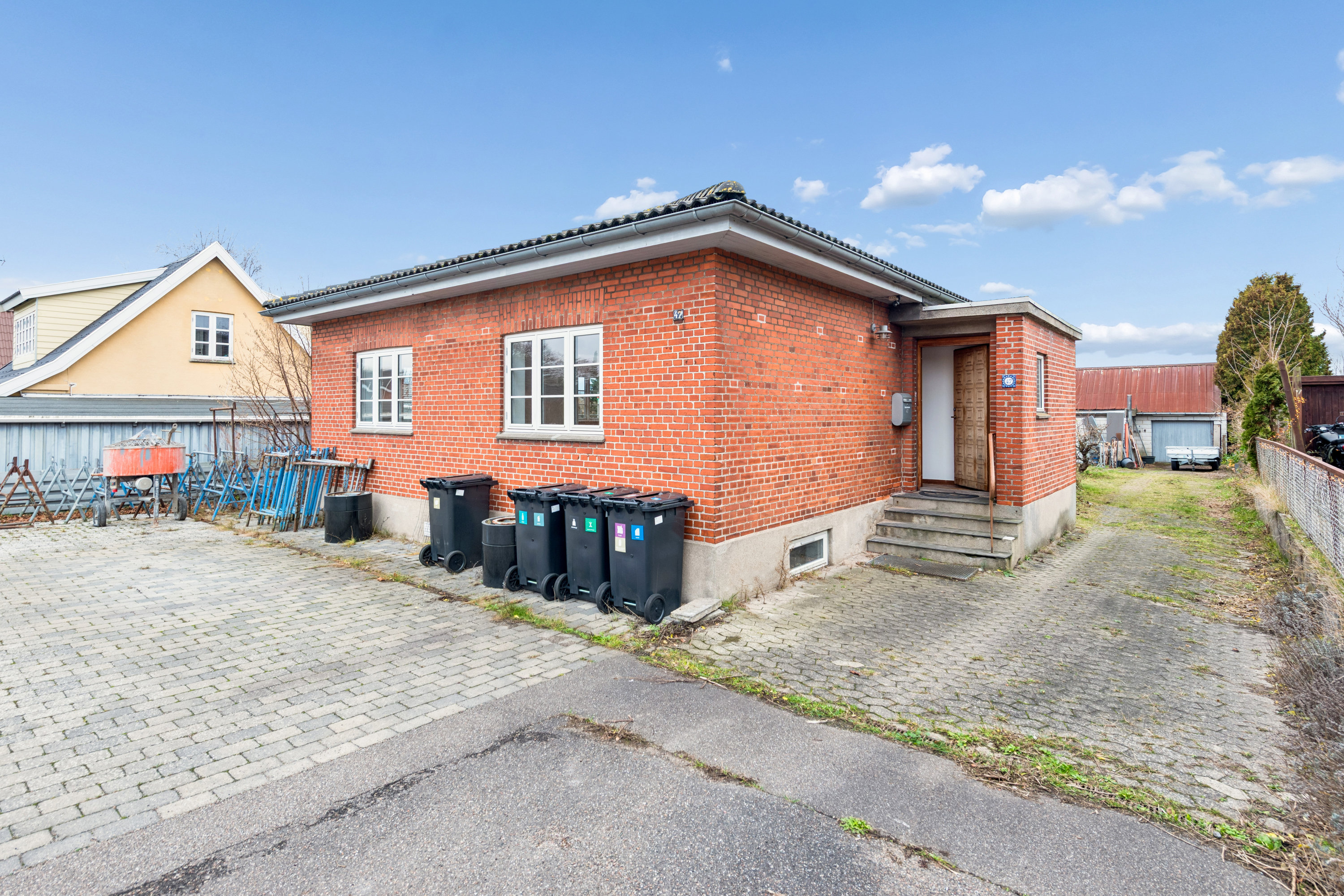 Forestil jer et hjem, hvor pladsen aldrig bliver en begrænsning. Hvor børn kan løbe rundt på græsplænen, og hvor der er plads til såvel værksted som kreative projekter. Denne rødstensvilla på 154 etagemeter giver jer netop den frihed. Her kan børnefamilien, den selvstændige håndværker eller hobbymekanikeren få et hjem, der både kan tilpasses og fylde hverdagen med hyggelige øjeblikke.