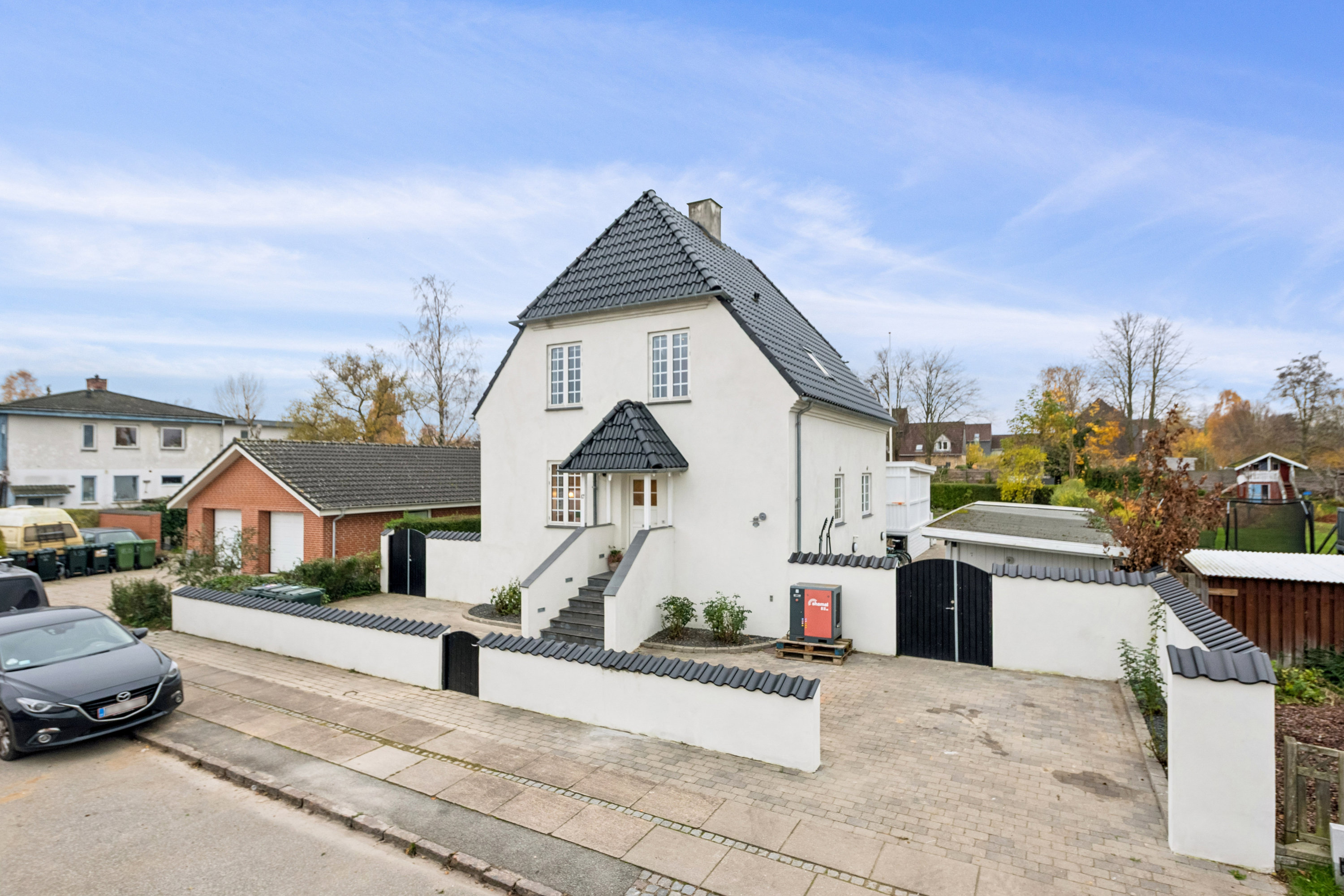 Her får du en moderne og indbydende villa med masser af charme, god plads og en attraktiv beliggenhed tæt på både natur, byliv og gode transportmuligheder. Allerede ved ankomsten mødes du af et skønt og imødekommende indgangsparti med indkørsel og plads til flere biler.