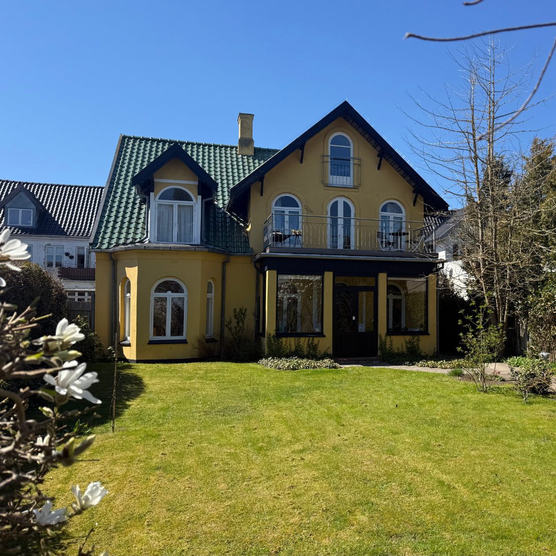 Smuk og karakterfuld patriciervilla med elegante, buede vinduer. En af den slags villaer som der ikke bygges flere af i dag. Villaen er beliggende (kun 8 minutters gang til Taarbæk Havn og Dyrehaven) tilbagetrukket fra Strandvejen og tilbyder egen parkeringsplads til 4 biler.
