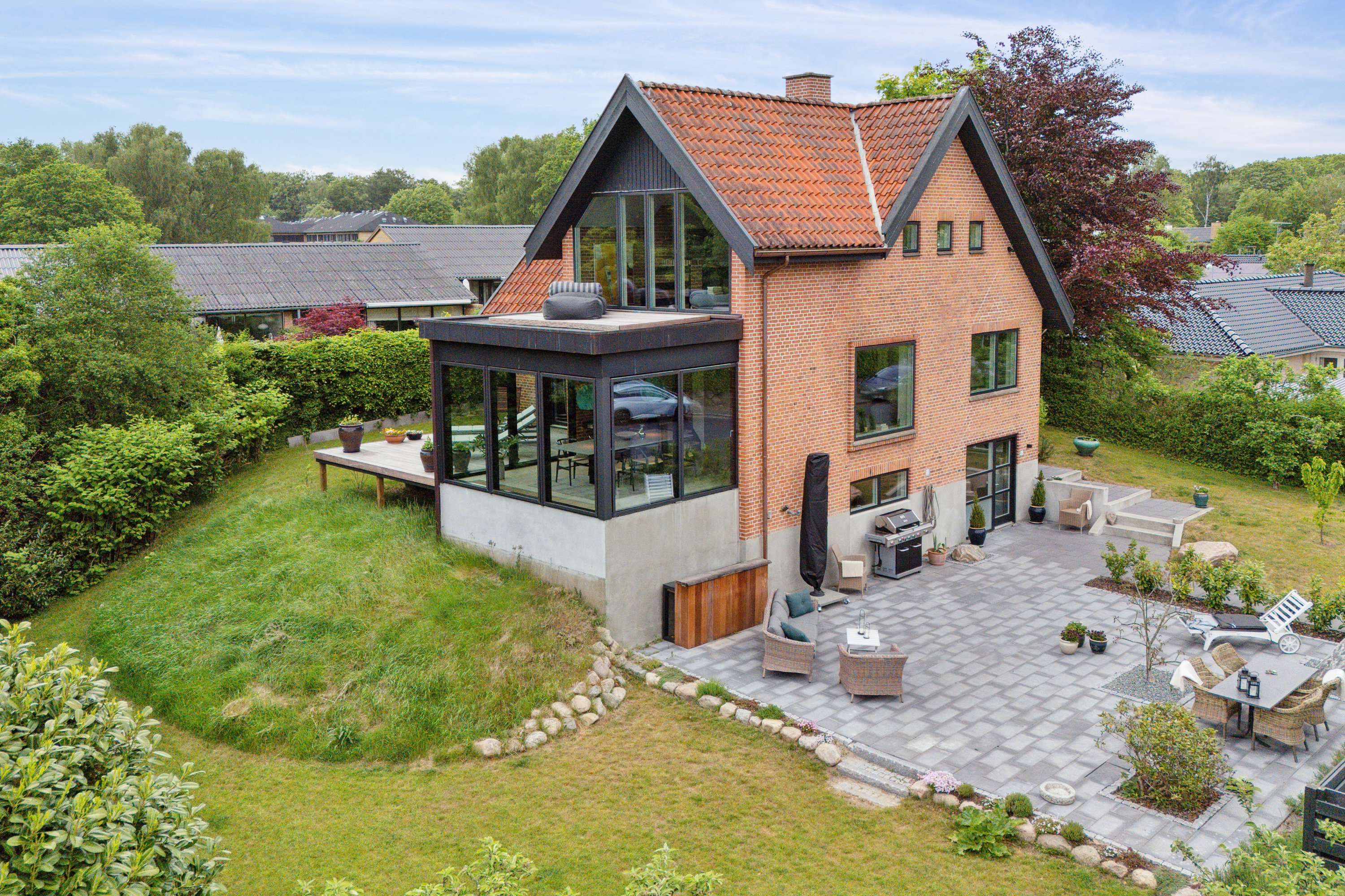Udendørs har haven i 2025 fået en kærlig hånd med ny muld og græs, men de gamle frugttræer og bærbuske står stadig og spreder hygge og charme. Den store fliseterrasse på ca. 80 m² fungerer som en skøn gårdhave, og mod vest finder du en ny træterrasse med direkte adgang fra stuen – ideelt til hyggelige sommeraftener.