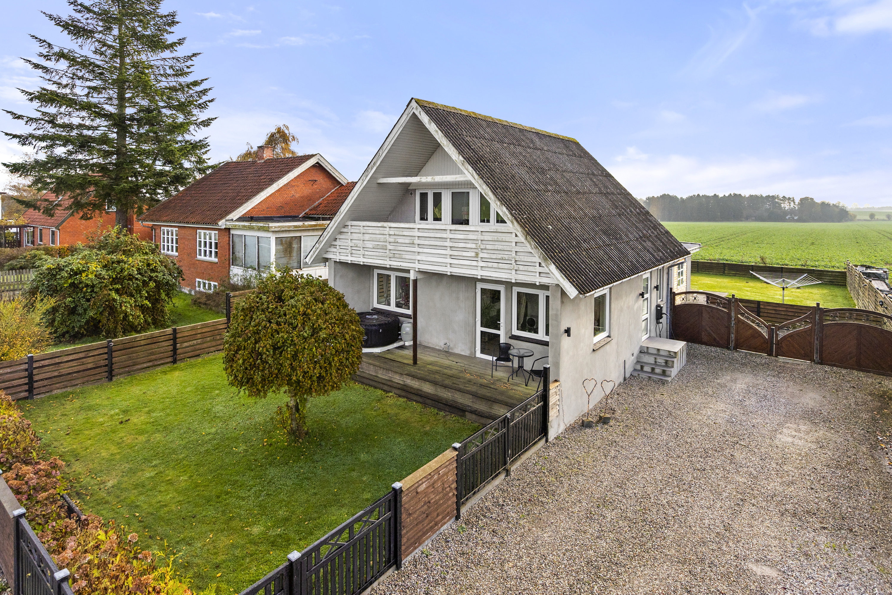 Et stort udhus supplerer ejendommen og tilbyder ideel opbevaring eller plads til pladskrævende hobbyaktiviteter, der kræver lidt ekstra rummelighed.