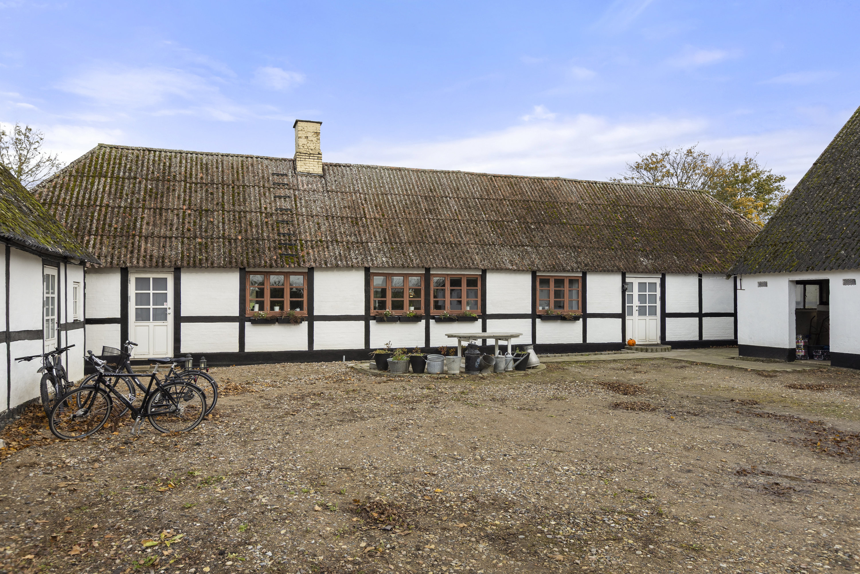 Når I ankommer til ejendommen vil I bemærke den rolige beliggenhed og den hyggelige markvej, hvor I finder jeres kommende hjem for enden. Her bliver I mødt af det meget charmerende bindingsværkshus. I får gode muligheder for parkering samt en hyggelige gårdsplads, inden I træder indenfor via entréen der også fungerer som hjemmets fordelingsgang. I kan også benytte indgangen i det praktiske bryggers hvor I får god plads til hverdagens overtøj, samt vaskefaciliteter.