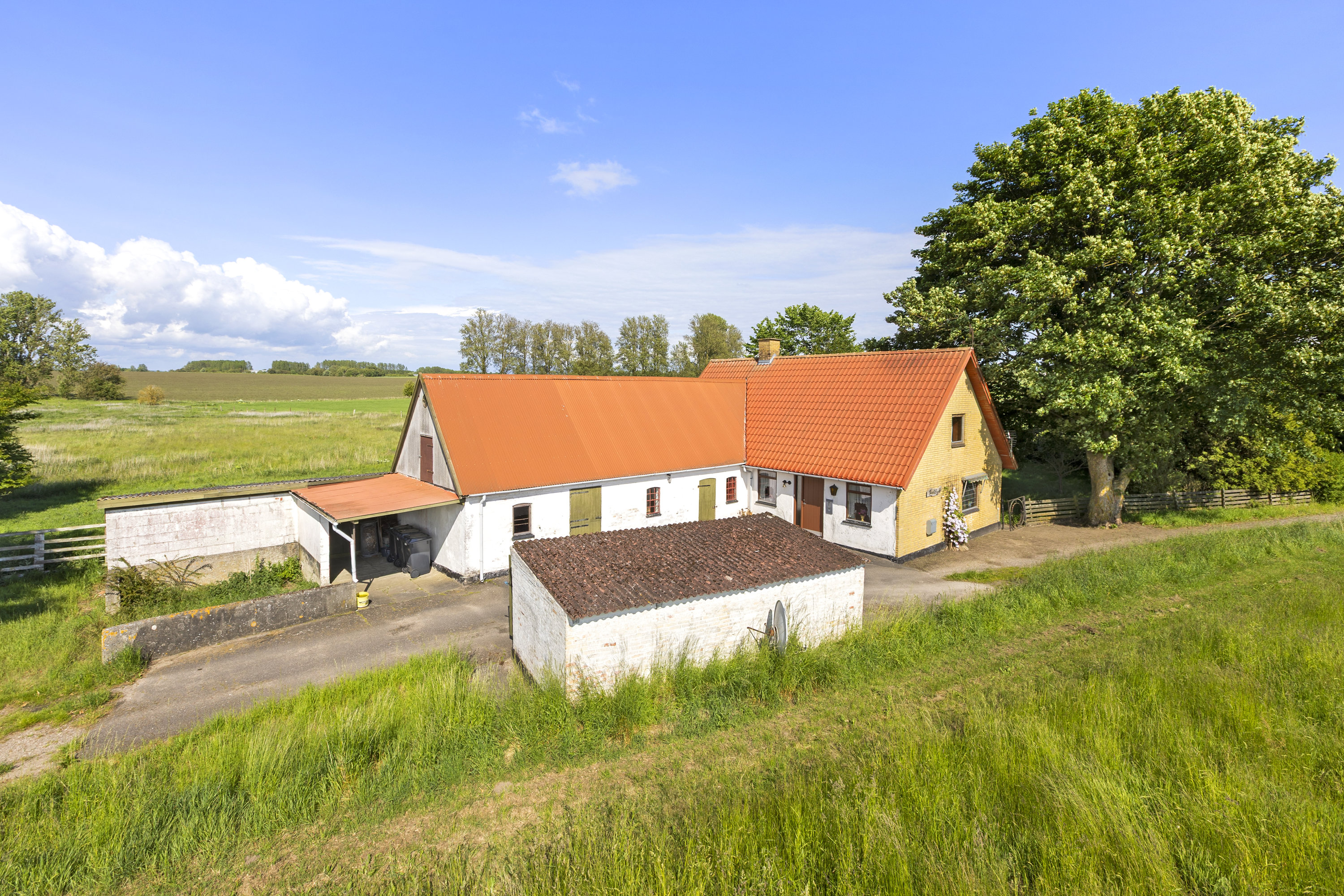 Villaen ligger fredligt med udsigt over markerne, langt til naboerne og højt til himlen.
