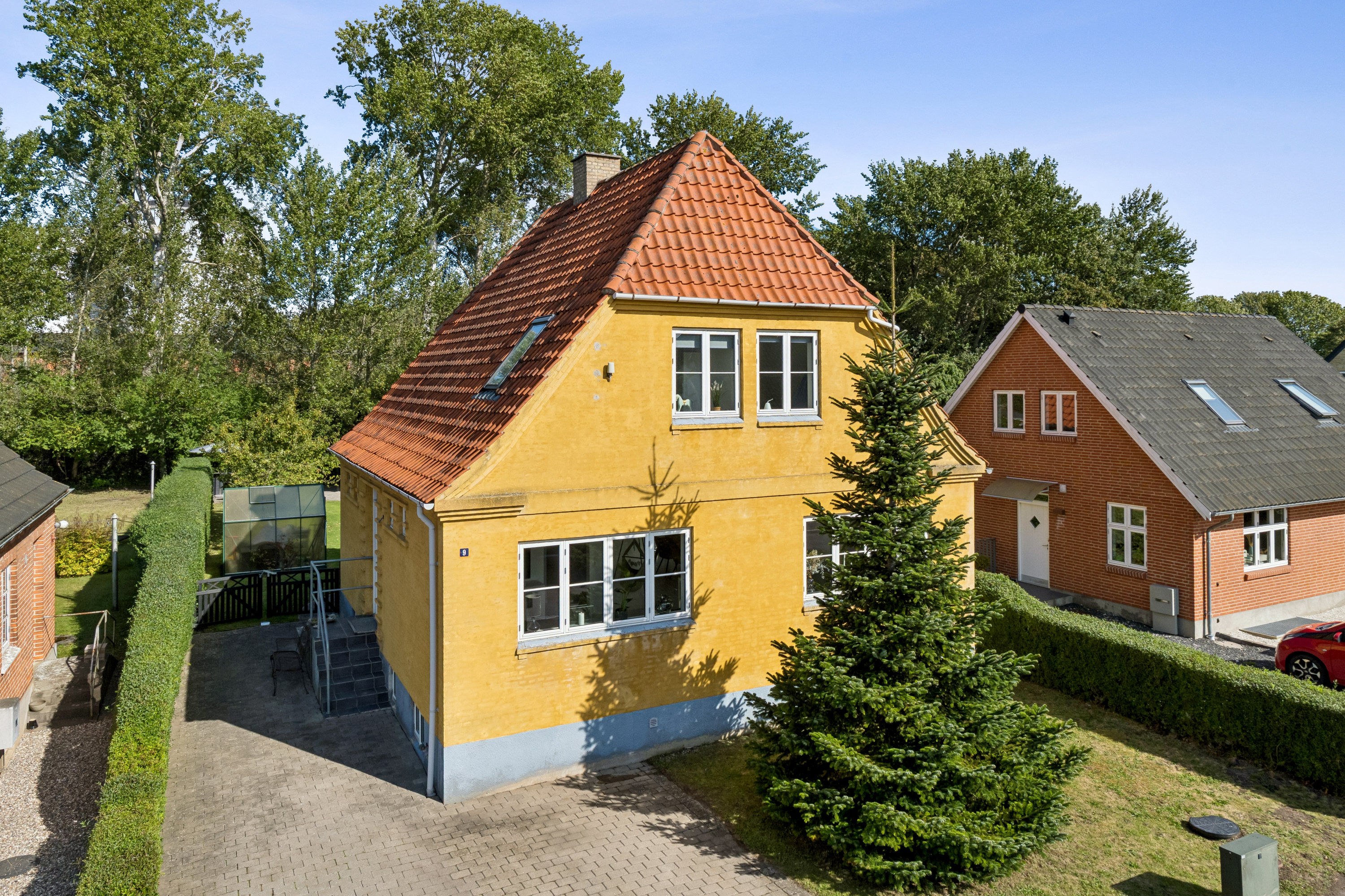 På adressen bydes I velkommen af en charmerende villa, der præsenterer sig med solgul facade, rødt, halvvalmet tegltag og gesims. Huset fremstår i god og indflytningsklar stand med moderne komfort, der gør hverdagen nem, og dertil kommer en dejlig have – tæt på hverdagen og naturen, blot en smuttur fra større byer.