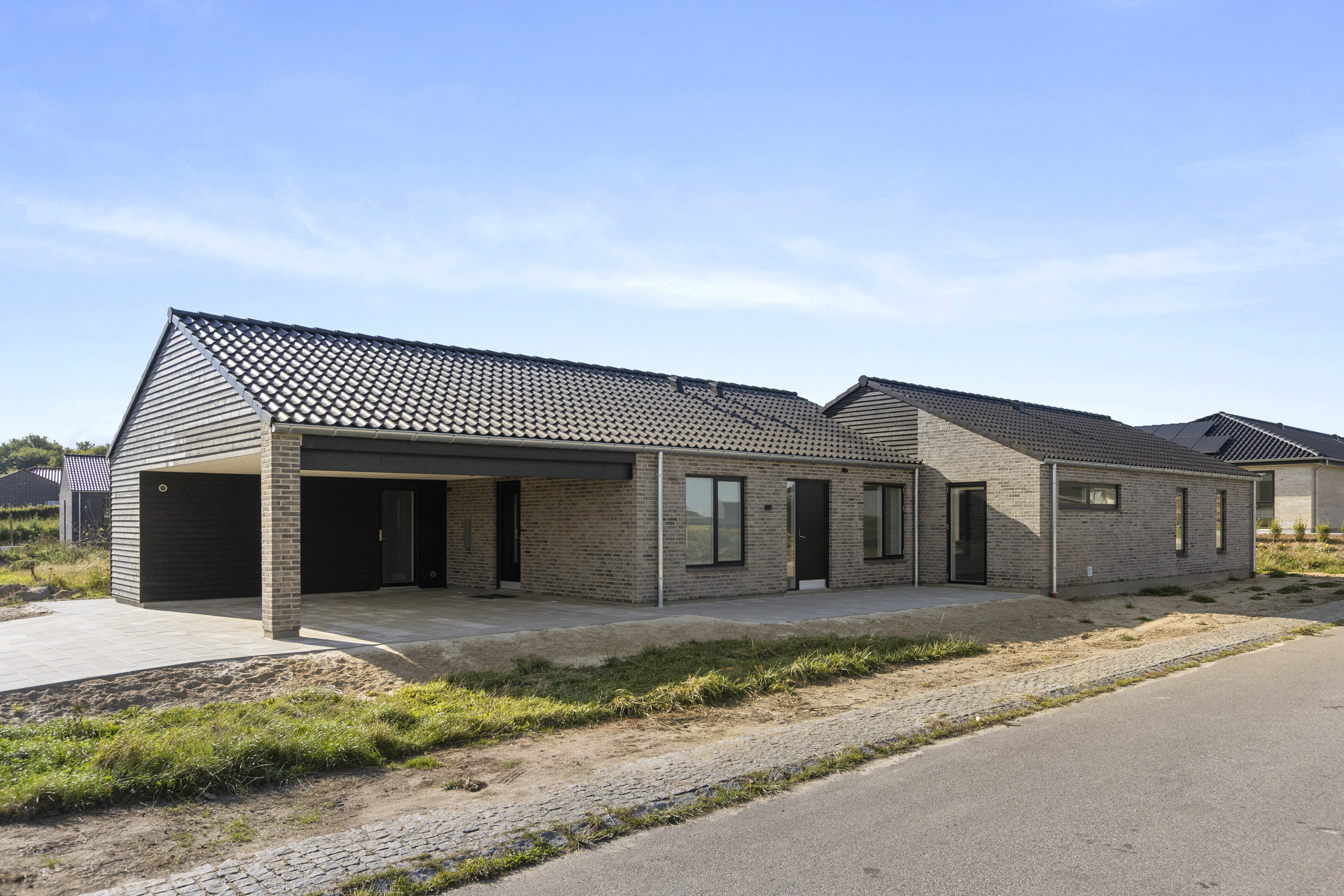 Denne prægtige villa er et splinternyt kvalitetshus fra 2025, der endnu ikke har været beboet. Her får du en sjælden mulighed for at blive den første til at flytte ind i et af de mest eksklusive nybyggerier, som Kalundborg har at tilbyde. Fra det øjeblik du træder ind på ejendommen, mødes du af den flot anlagte flisebelægning, der indrammer de generøse udendørs arealer og den store dobbelte integrerede carport samt det praktiske udhus på 12 m2.