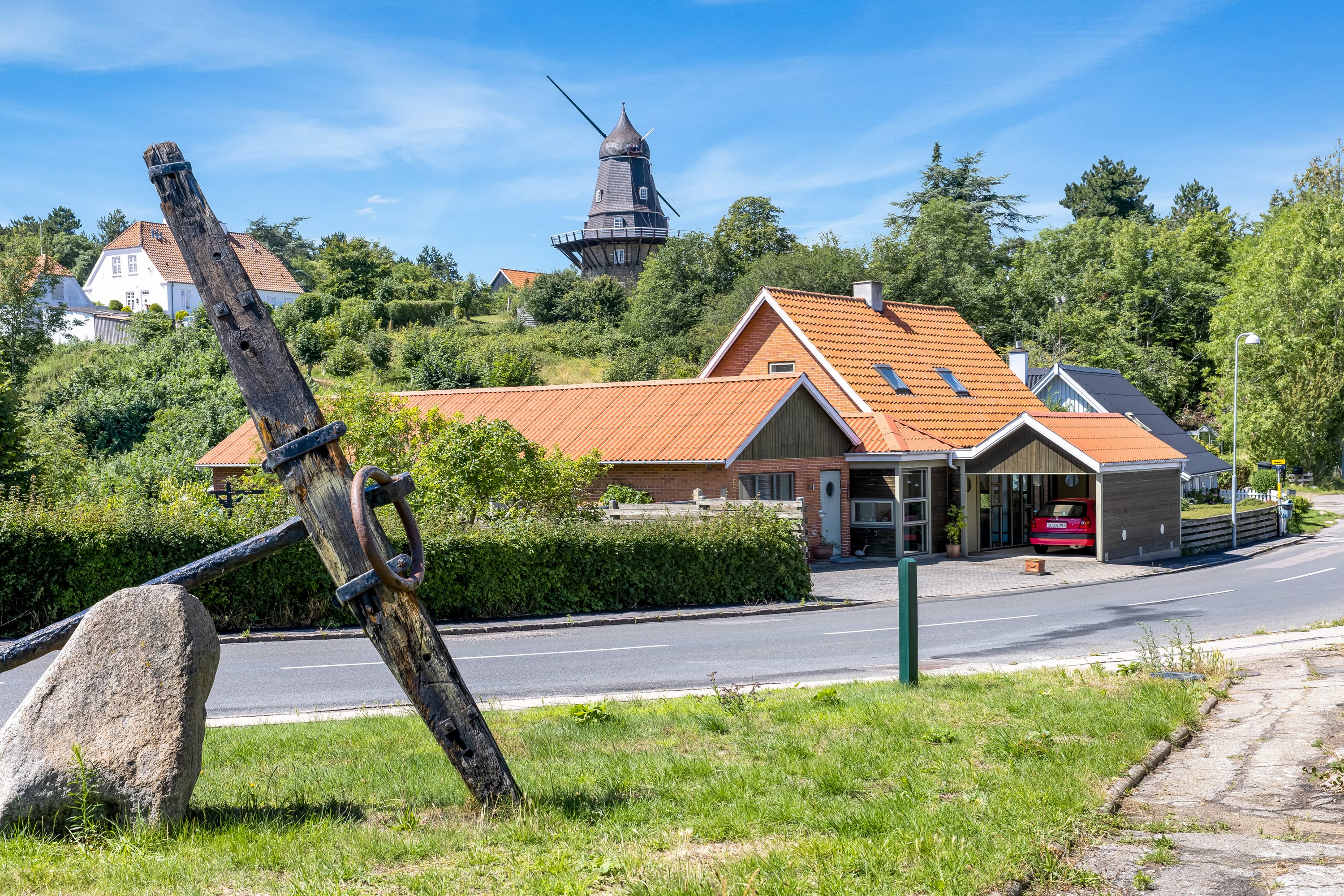 Ejendommen er placeret blot skråt overfor den lokale brugs, så du har nem adgang til dine dagligvarer, og i gåafstand fra ejendommen finder du også Røsnæs Friskole, hvilket er ideelt for familier med børn.