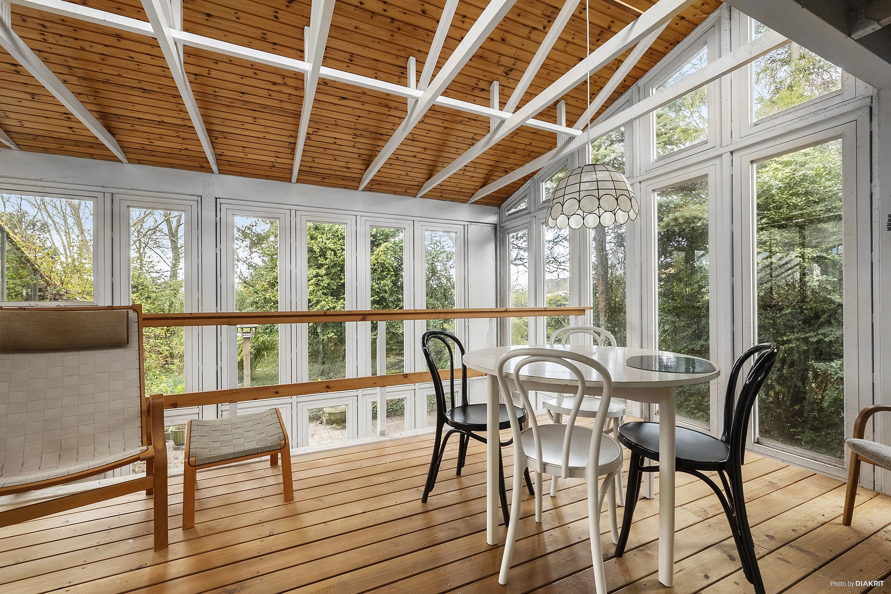 Men det er først, når du træder ud i den storslåede udestue, at huset for alvor afslører sit hjerte. 65 m2 i tre niveauer, loft til kip og fritlagte spær – en rumlig oplevelse ud over det sædvanlige. Store vinduespartier lader lyset strømme ind og inviterer haven med indenfor. Her kan du skabe din egen oase – uanset årstid.