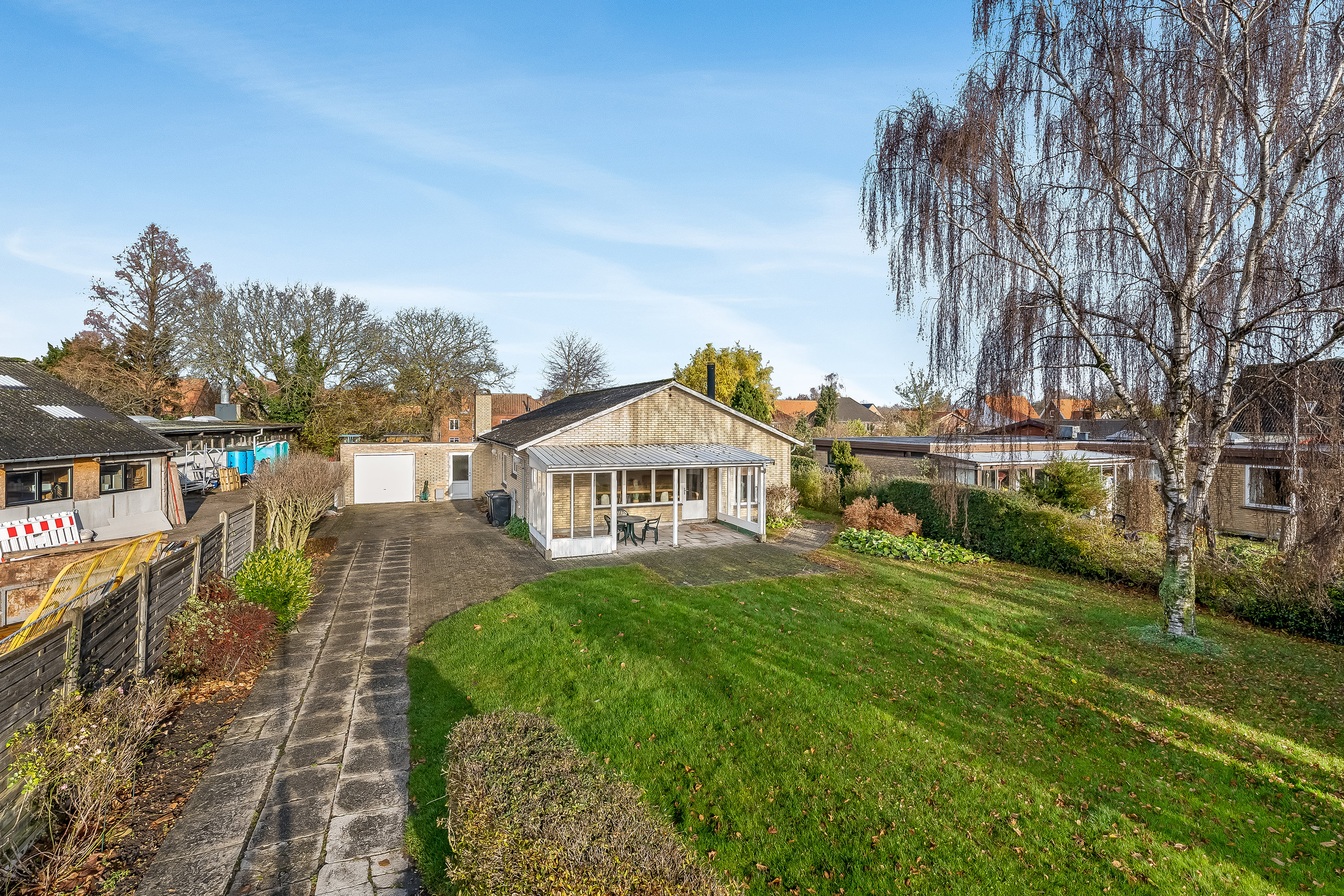 Centralt beliggende og funktionelt indrettet etplansvilla. Ejendommen opvarmes med fjernvarme kombineret med brændeovn. Indh. Entre med indgang til stort badevær. 2 børneværelser samt soveværelse. Køkken med ældre inventar. God stor sydvendt opholdsstue med parketgulve, brændeovn og udgang til sydvendt overdækket terrasse. Bryggers og grovkøkken.Indkørsel med muret garage. God lukket grund og have.
