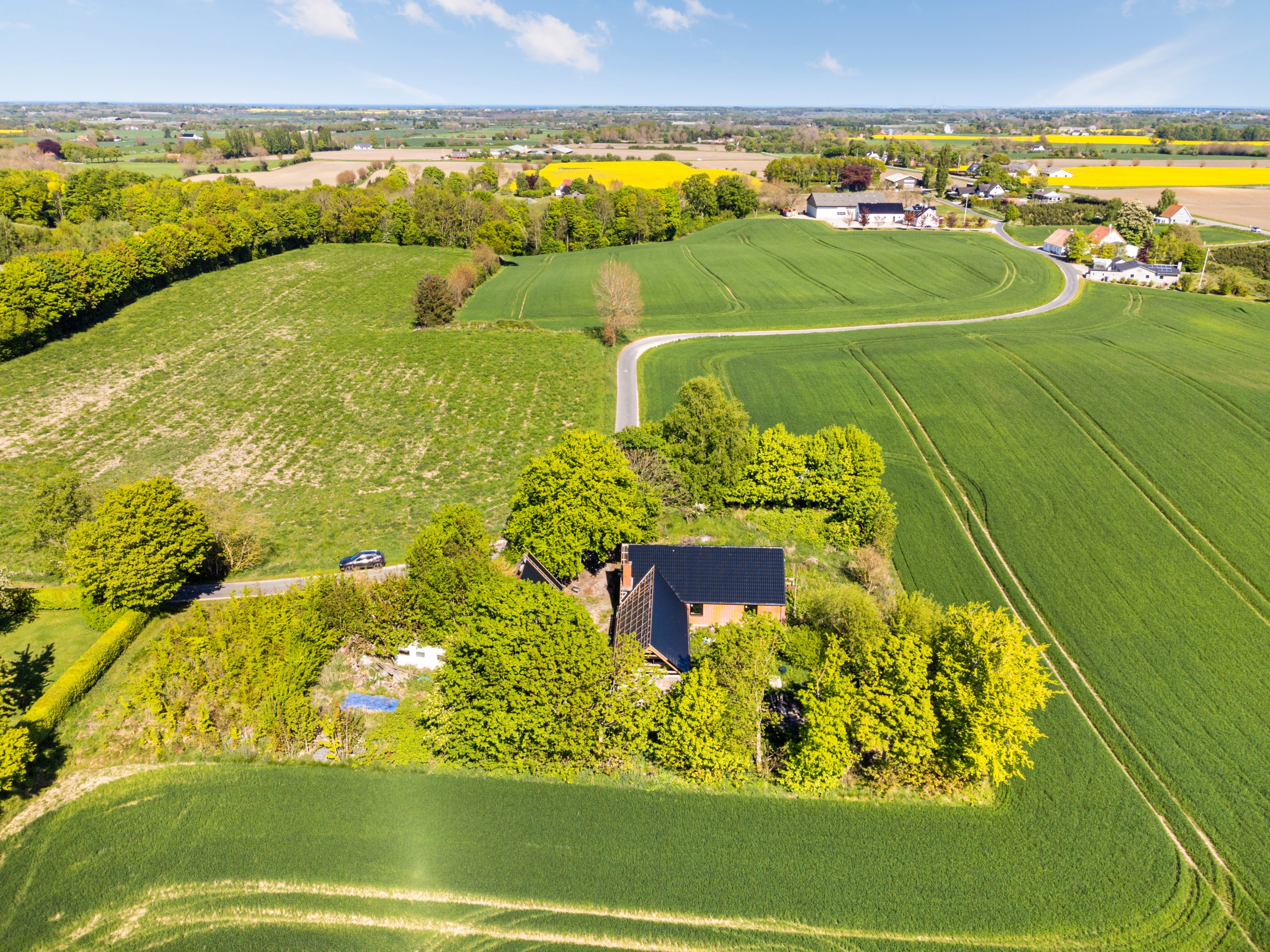 Her kan du bo omgivet af ro og fred med fuglefløjt og naturens smukke farver omkring dig. På grunden vokser store, gamle træer, som sikrer total privatliv - og en smule skygge på de varme dage.