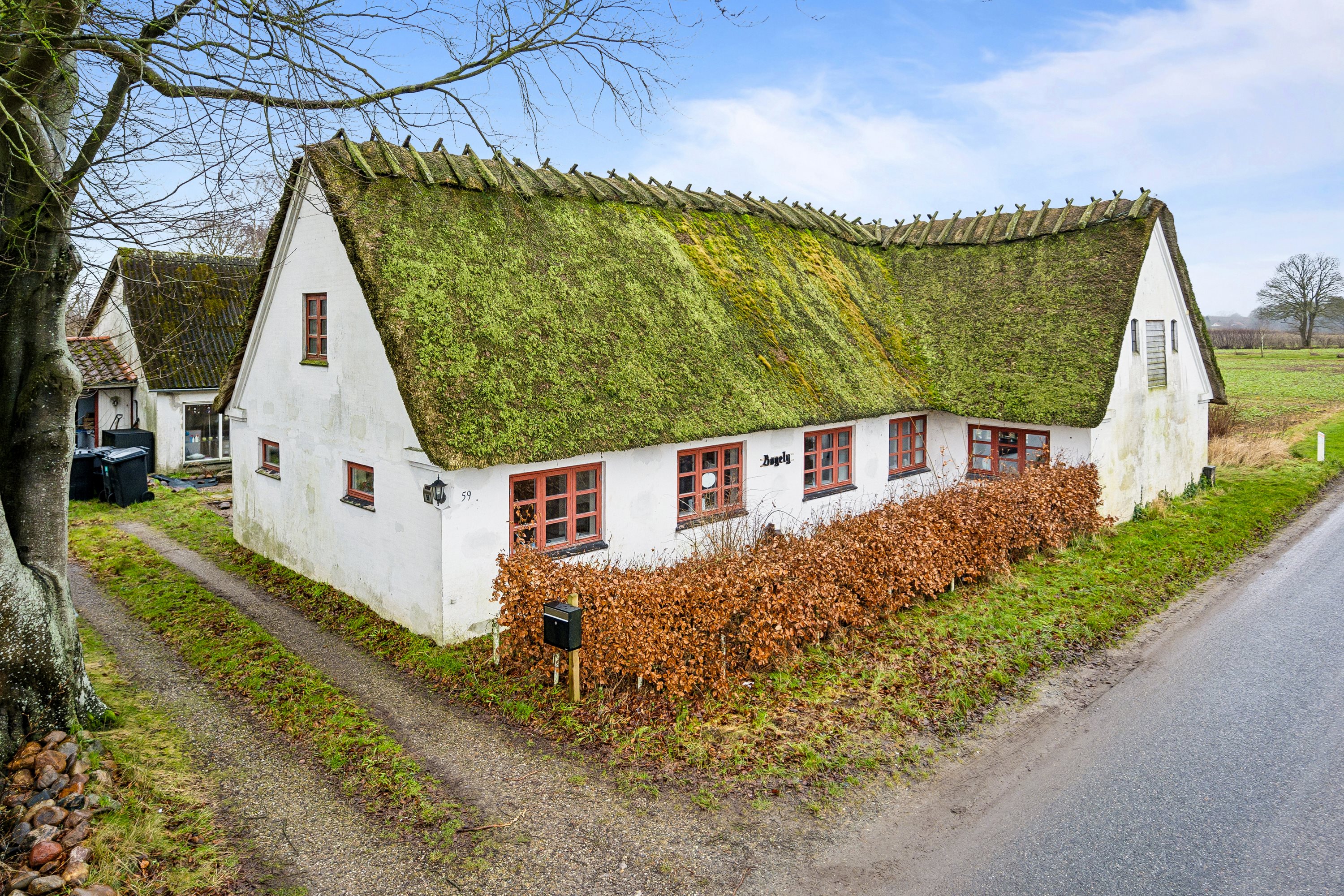 Velkommen til Allestedgårdsvej 59, hvor denne charmerende stråtægte ejendommen er beliggende.Ejendommen er beliggende idylliske og naturskønne omgivelser. Fra ejendommen og haven er derpragtfuld udsigt til skoven fra begge sider.