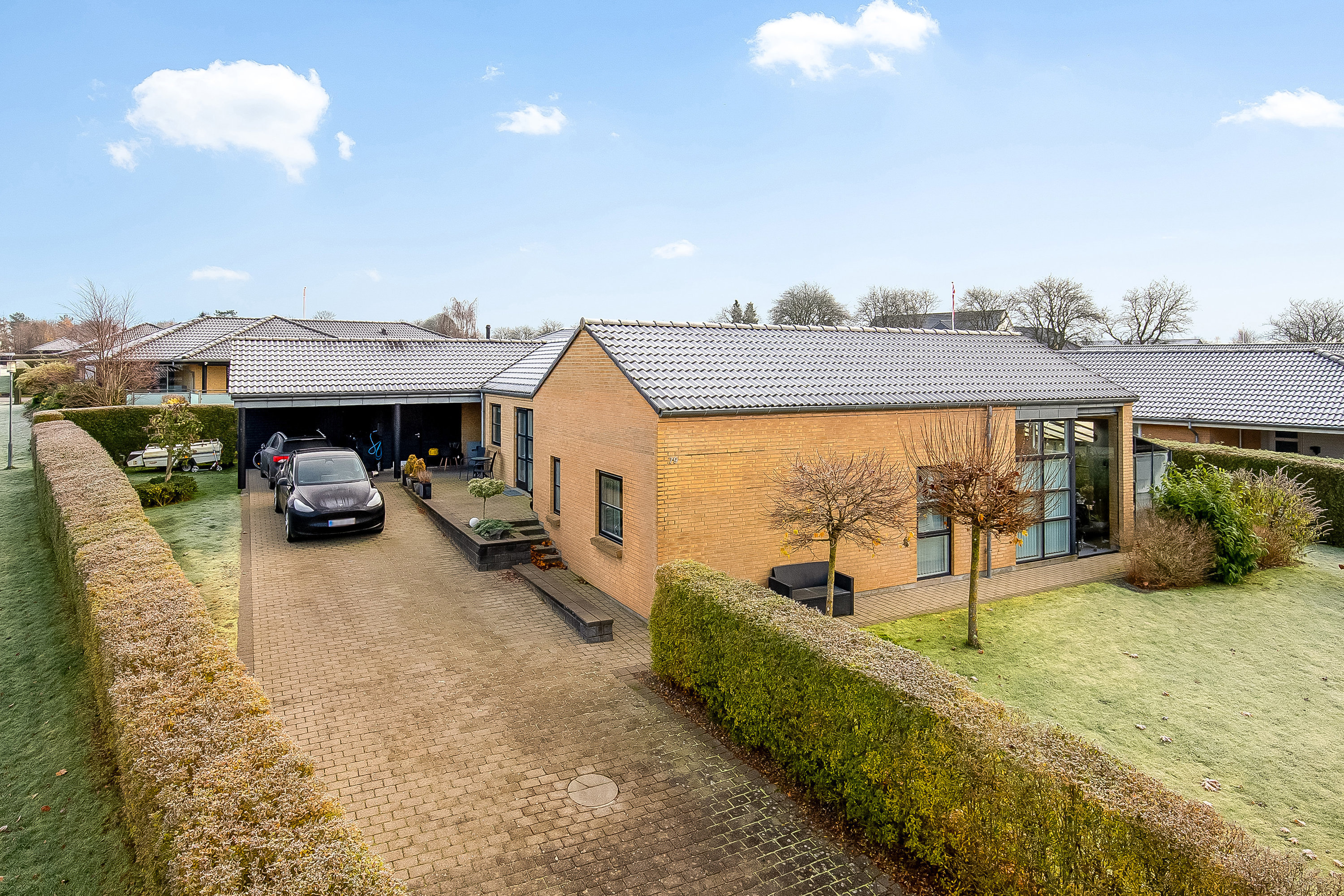 Boligen har en gennemtænkt indretning med flere gode værelser, så der er plads til både familie, hjemmekontor eller hobbyer. Forældreafdelingen har eget badeværelse, mens de øvrige værelser ligger tæt på husets andet badeværelse. Derudover får du et praktisk bryggers med god opbevaringsplads. Dertil en carport og to redskabsrum, som gør hverdagen mere overskuelig.