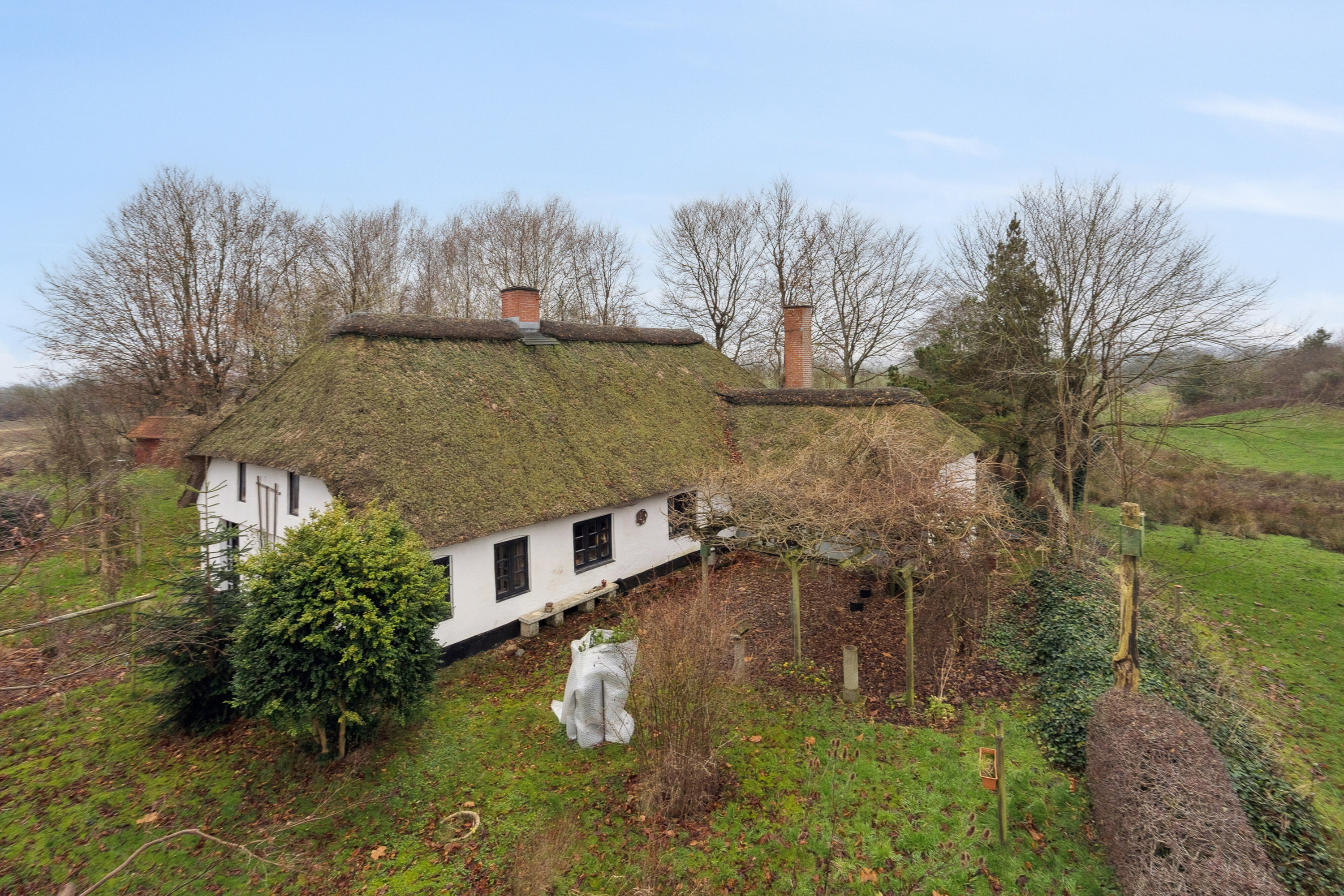 I smukke, rolige omgivelser mellem Jordrup, Lunderskov og Kolding ligger denne hyggelige etplansvilla og venter på nye ejere. Det stråtækte hus er aldeles charmerende fra inderst til yderst, og foruden husets to værelser, køkken, stue og badeværelse får I en frodig og anseelig grund med frugttræer og bærbuske samt flere udhuse til hobbyaktiviteter og sysler i værkstedet.