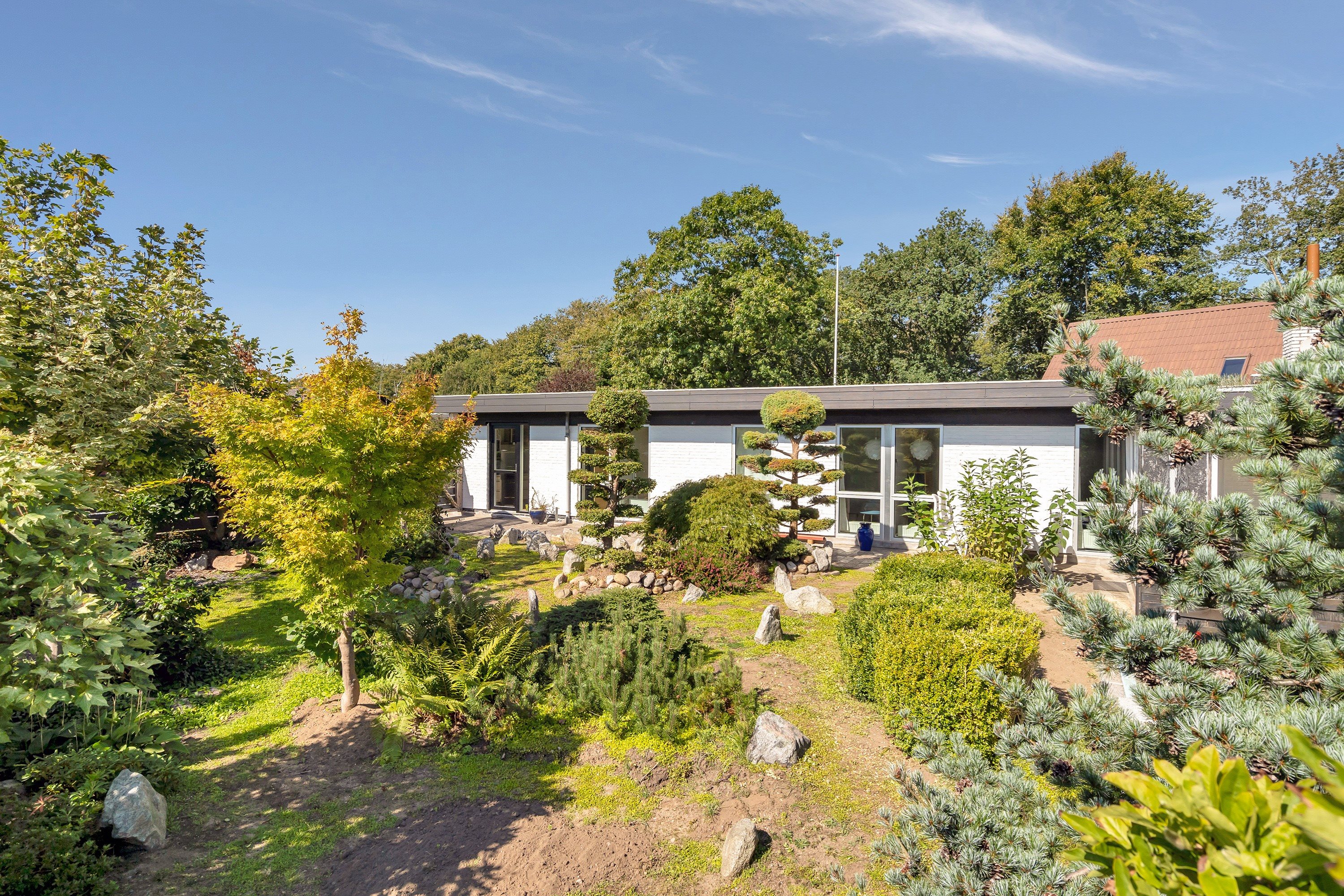 Boligen består foruden denne forældreafdeling af et stort åbent køkkenalrum med udgang til udestue samt en stue med direkte udgang til haven. Derudover er to børneværelser i denne ende af ejendommen.