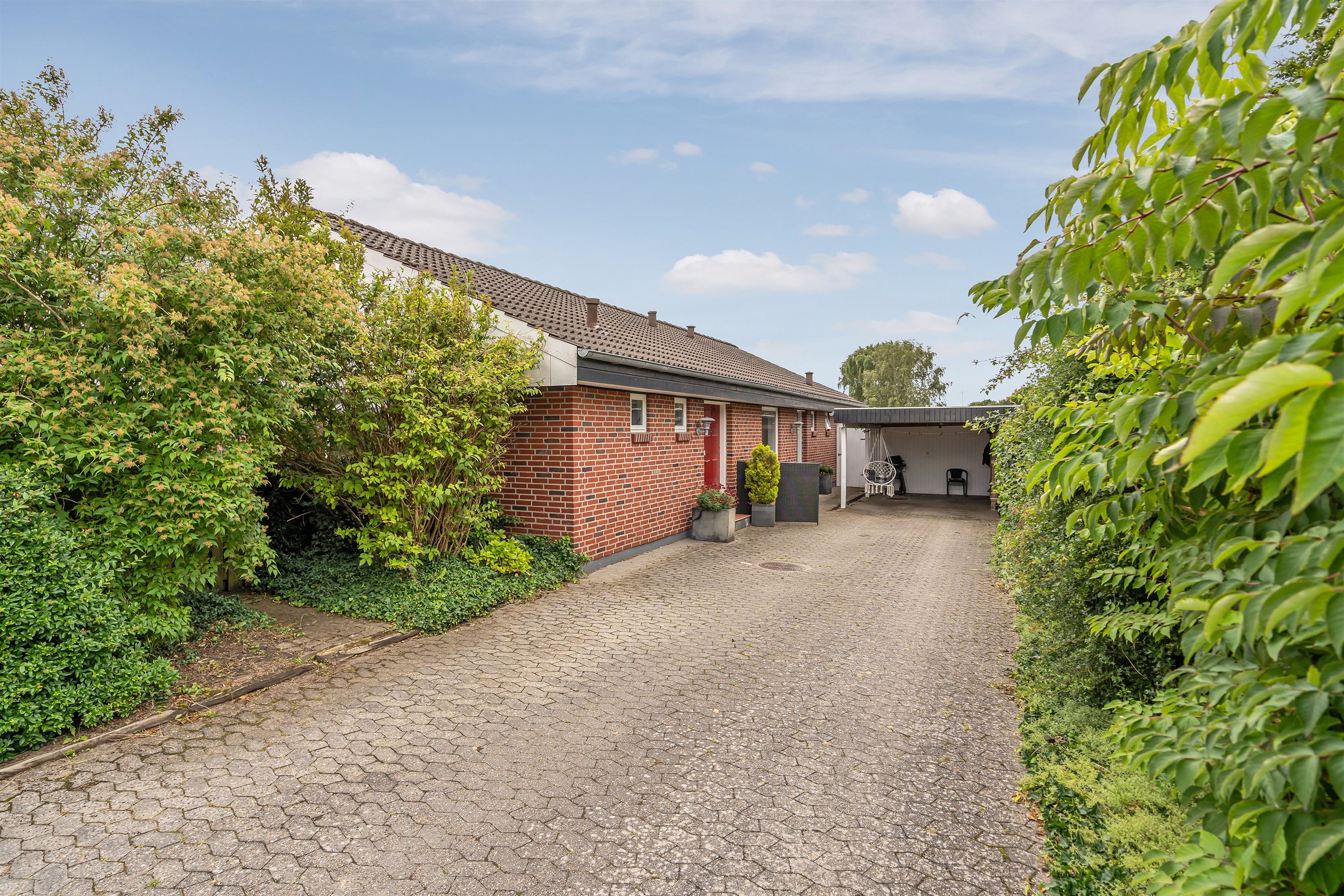 Lige nu kan I overtage nøglerne til dette pragtfulde hus i Gjesing, der byder på en lys og indbydende indretning samt en fremragende planløsning, som matcher børnefamiliens behov til perfektion. Boligen er indrettet med en separat voksen- og børneafdeling, der har badeværelse i hver del, og så byder opholdsrummene på en helt unik åbenhed og masser af lys! Huset ligger som det sidste for enden af en lukket vej, og det er herfra nemt at komme rundt i området via stisystemer, som vil føre jer til nærmeste skole, Bilka og Esbjerg Storcenter, ligesom det er muligt at gå og løbe helt hen til Krebsestien. Bagved huset er der desuden et stort grønt areal, som børnene kan bruge til boldspil og leg. Lys og åbenhed er de to ord, som bedst beskriver husets indretning. Der er en fantastisk åbenhed mellem køkkenalrummet og udestuen, som sikrer, at lyset får lov til at strømme igennem rummene. Køkkenalrum, udestue og bryggers har i øvrigt et pænt, gennemgående klinkegulv med gulvvarme. Videre fra alrummet er der åben forbindelse til pejsestuen, hvor I kan samles til nogle hyggelige timer med familien. Boligen byder på fire værelser, fordelt på to separate afdelinger. I den ene del af huset finder I forældresoveværelset, der har eget badeværelse og direkte udgang til haven. Den anden afdeling rummer tre værelser og et ekstra badeværelse. Begge badeværelser er renoveret for omkring 12 år siden. Foruden de nævnte rum er der et bryggers med vaskeplads og en entré. Som nævnt, er der fra soveværelset udgang til udearealerne, hvor I oplagt kan slå jer ned under pavillonen, som også kan anvendes på de regnfulde dage. Haven er især dejlig i forårs- og sommermånederne, hvor rododendron og brombærbuskene blomstrer i fuldt flor. Der er også mulighed for at dyrke grøntsager og krydderurter i højbedene, og så har ejendommen desuden en carport. En lys villa med gode muligheder for at familielivet kan udfolde sig. Lyder det som noget for jer? Kontakt Estate Robin Thybo for en fremvisning.