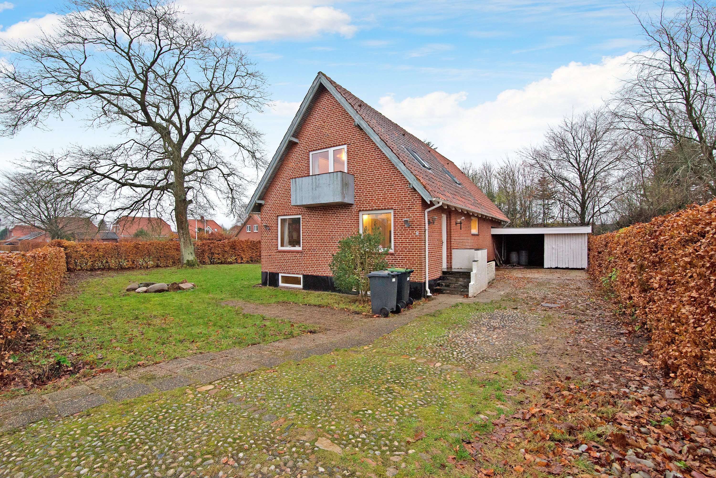 Selve ejendommen er en klassisk murermestervilla fra midten af 50'erne i røde sten med rødt tag og høj, pudset sokkel. Huset trænger til en kærlig hånd hist og her, men her er stort potentiale og charme til stede.