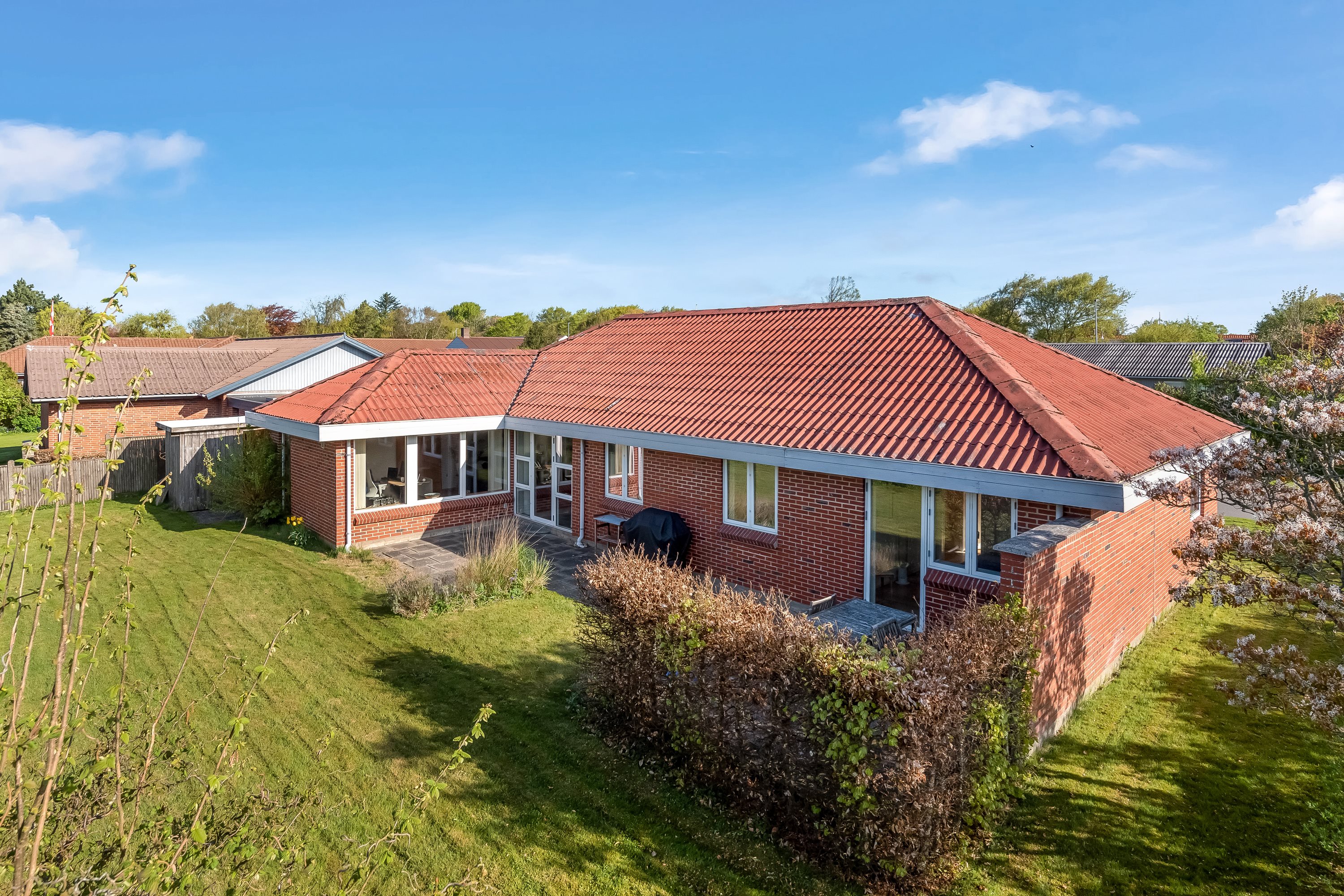 Huset er omgivet af en 723 kvm dejlig, lukket og ugeneret have/grund mod syd, vest og øst.