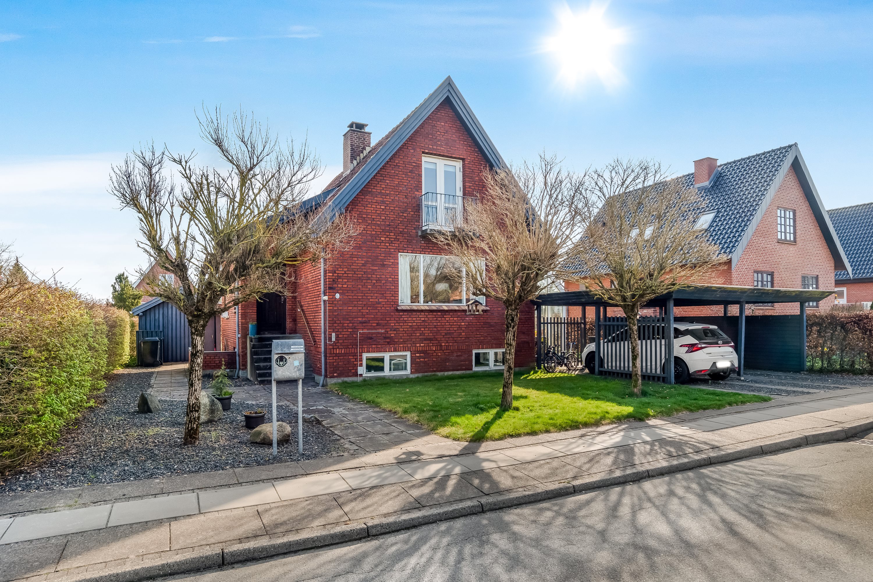 Tilhørende carport opført i moderne sti og placeret foran huset, hvor der også er en nem forhave.