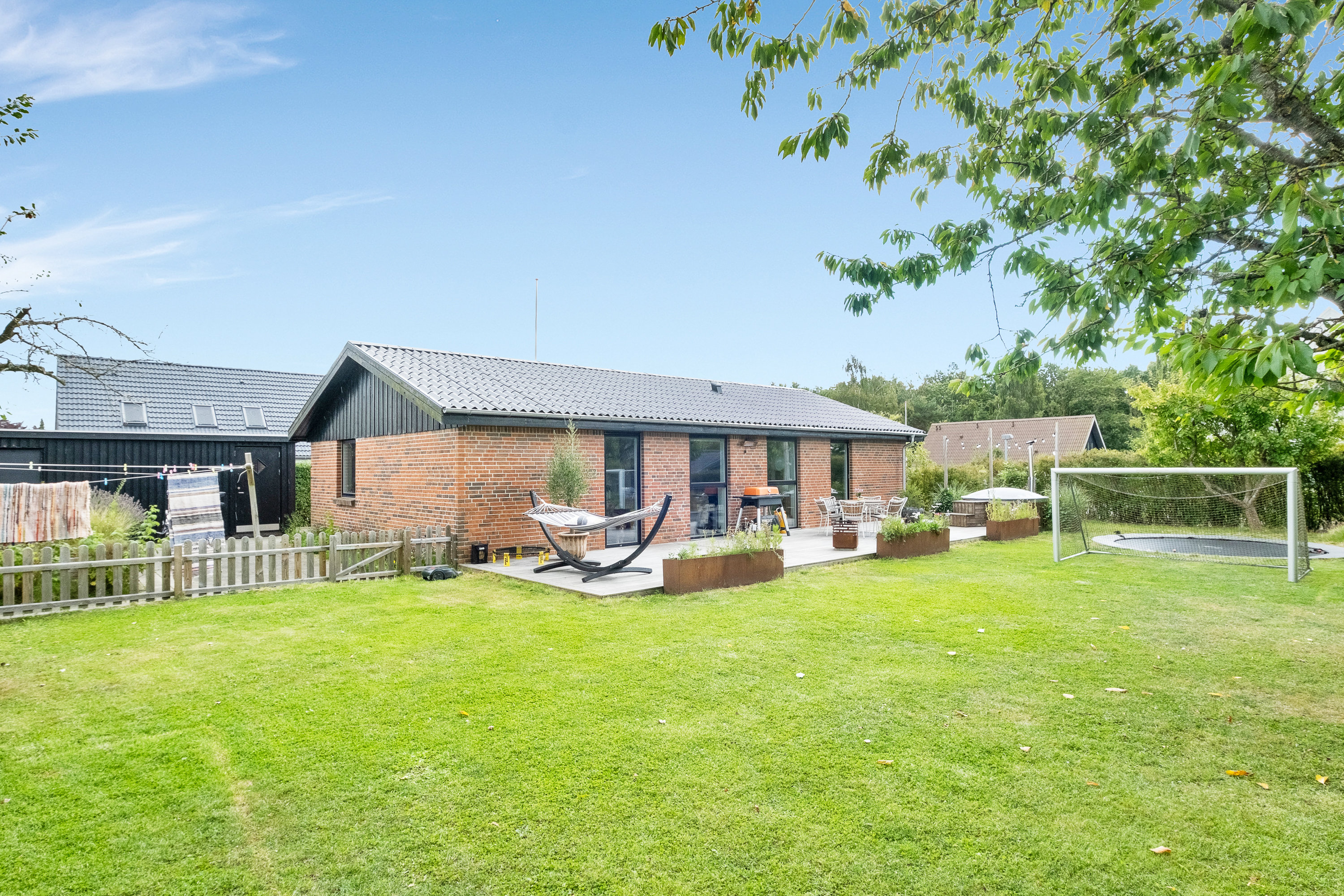 Husets naturlige samlingspunkt er det store, åbne HTH-køkken-alrum fra 2016, der ligger i åben forbindelse med stuen. Her er der god plads til både madlavning, lektielæsning og hyggelige aftener med familien. Store vinduespartier fra 2021 og terrassedøre sørger for et fantastisk lysindfald og skaber en naturlig forbindelse til terrassen og den ugenerede have. Taget blev udskiftet i 2025, hvilket giver både tryghed og en opdateret energimæssig standard til boligen. Udearealerne er lette at holde og byder på flere solrige kroge – perfekte til afslapning, leg eller hyggelige stunder med familie og venner.