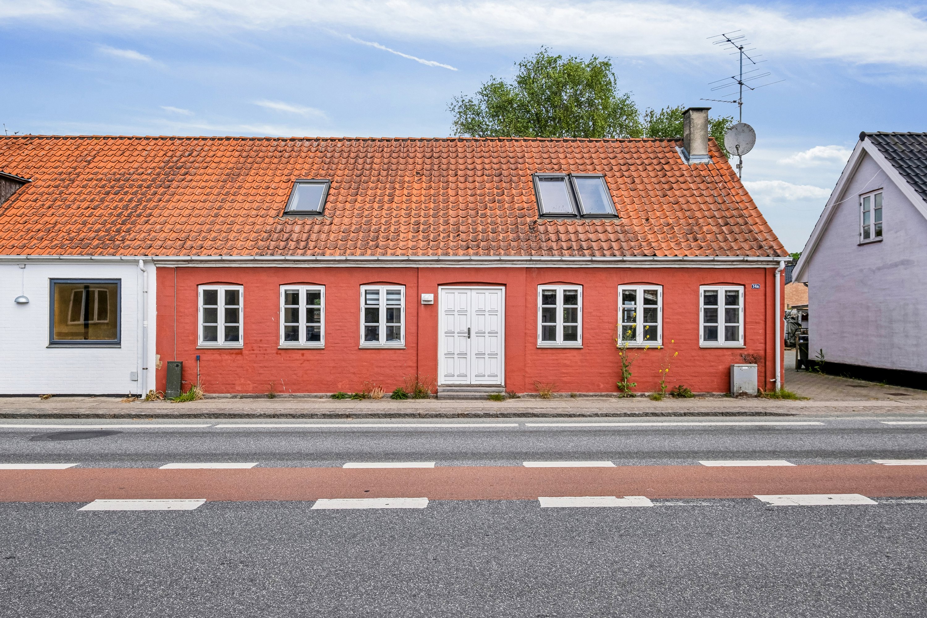 Siden 1890 har det røde byhus stået her. Det har småsprossede vinduer, røde tegl på taget og en flot hoveddør, der åbner ind til lige knap 150 m2 bolig. Stueetagen byder på et køkken og en spisestue i åben forbindelse, et stort soveværelse, et badeværelse og et bryggers, mens førstesalen rummer yderligere to værelser og en stue, hvor hanebåndene er eksponerede med loftet ført til kip. Dagslyset falder ind gennem store tagvinduer fra to verdenshjørner, og da det hele er umøbleret, er det bare med at forestille sig indretningen. Når I alligevel er i gang og har de kreative briller på, vil I måske også installere jeres drømmekøkken nedenunder – og måske slå halvmuren ned mellem køkkenet og stuens brændeovn. Det er op til jer!