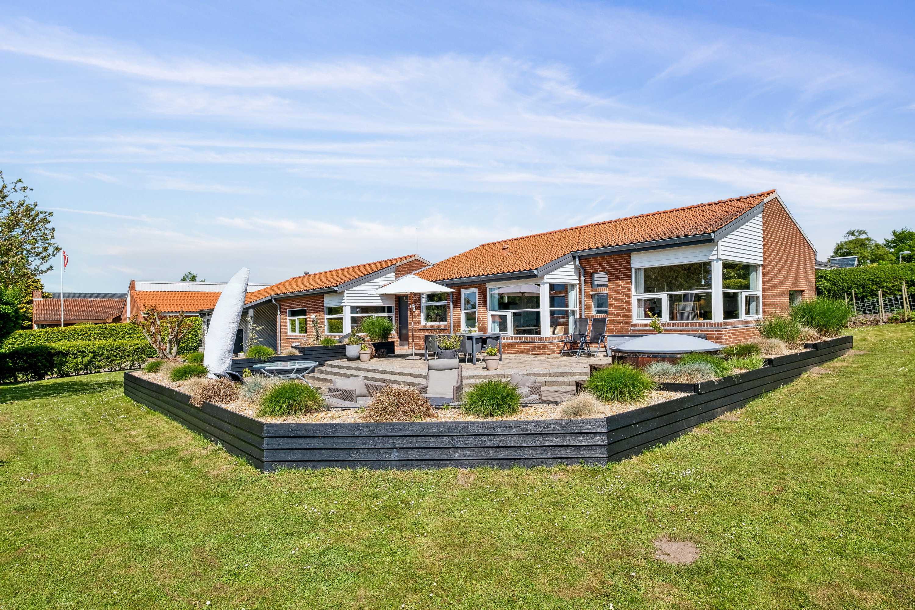 Det er et velholdt hjem, et kvalitetshjem. Som magneter vil I sætte jer ud på terrassen med vandets blå nuancer i kulissen og solen lige i ansigtet fra morgen til aften. Terrassearealerne vender nemlig stik syd, og selvom udsigten både når ind til køkken-alrummet og flere værelser takket være optimeringen i det forskudte facadeforløb, bliver dette hurtigt favoritten, når sommeren viser sig fra sin bedste side.