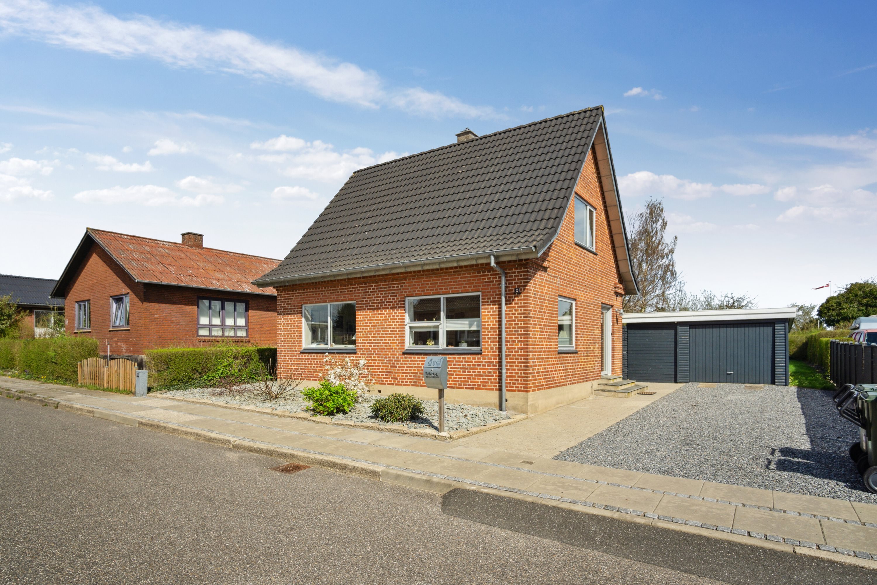 Til villaen hører garage og gode udhusfaciliteter samt pæn indkørsel med god plads til gæsters parkering
