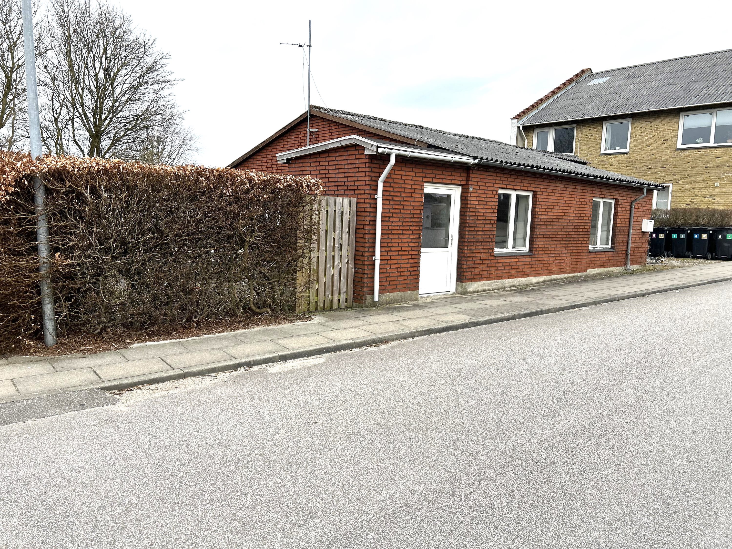 Centralt beliggende mindre villa tæt på indkøb og skole. Meget lille grund som består af gårdhave og indkørsel. Villaen er indrettet med rummelig stue med udgang til terrasse/gårdhave, entre, køkken med elementer i lys ask., lyst bad med plads til vaskemaskine, 2 gode værelser og ml. gang . der er laminatgulve over det meste af huset. Til villaen hører mindre skur opført træ. Vinduer og døre er flere steder udskiftet til pvc. Centralt beliggende med indkøb, skole, hal og transport indenfor få hundrede meter. Huset er velegnet til b.la. udlejning, så har du en bolighaj i maven er det måske noget for dig. Villaen er p.t udlejet og giver en forrentning på ca 10%.