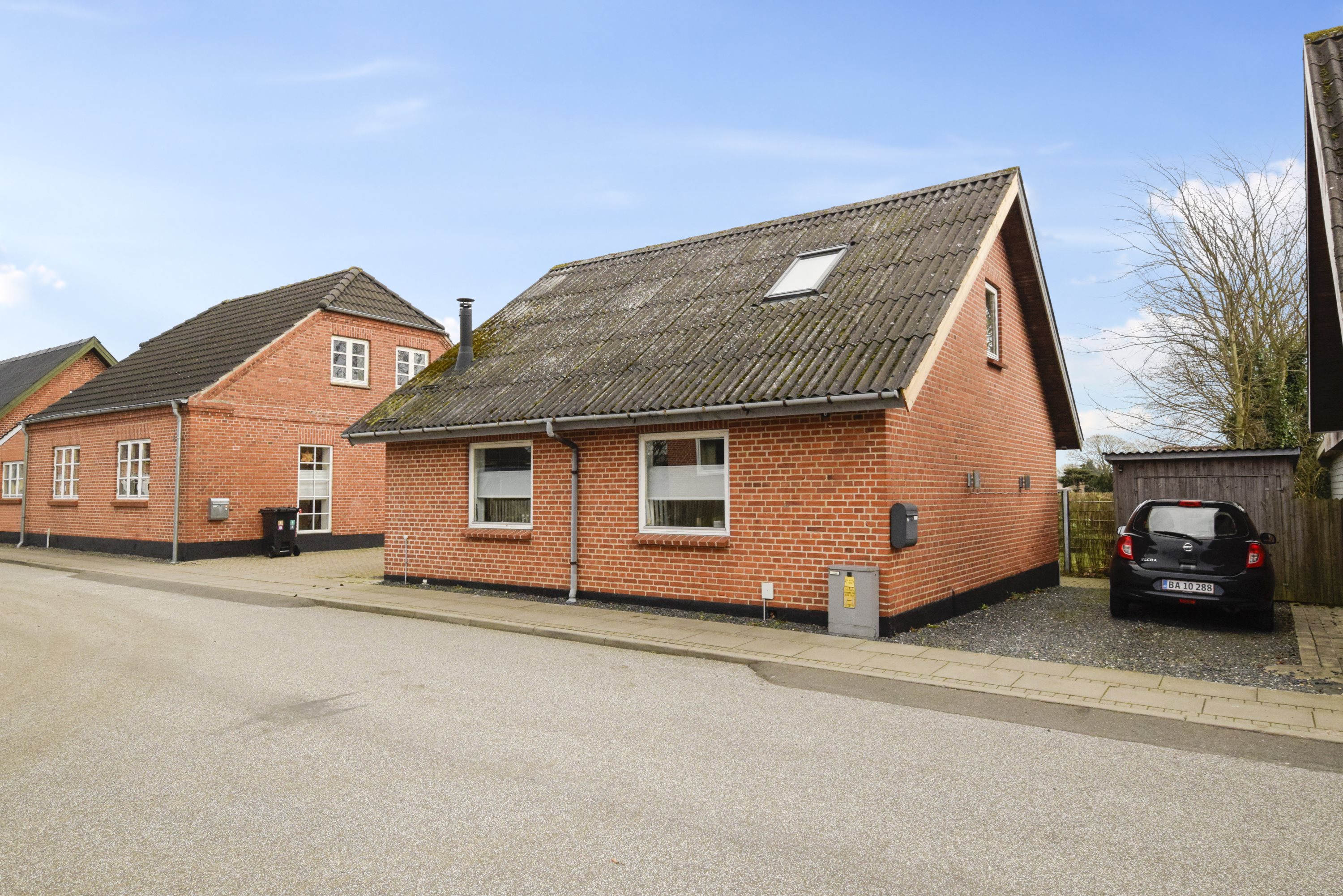 Adressen fortæller meget godt, hvor centralt villaen her ligger. Især hvis I har skolesøgende børn bliver det noget, som I kommer til at elske, for en kortere og mere sikker skolevej bliver virkelig svær at finde. Men selv hvis børnene er mindre kan I se frem en lettere hverdag, for her er der ikke langt til hverken vuggestue eller børnehave. Nu vi er ved beliggenheden så lad os lige få med, at det hyggelige lokalsamfund byder på en rigtig god købmand (med dagligt, friskbagt brød), et velassorteret byggemarked, frisør, lægehus, tandlæge plus mere af alt det, I har behov for i dagligdagen. Endelig betyder nærheden til områdets større byer (hvoraf de fleste har rigtigt gode busforbindelser) at logistikken bare kommer til at hænge rigtigt godt sammen. Selve villaen kan I godt glæde jer til; en dejlig overskuelig indretning, fornuftigt med plads, men ikke mindst enormt megen hygge, uanset hvilket rum I træder ind i. Planløsningen byder på entré og badeværelse (begge med gulvvarme), et veldisponeret køkken, en meget regulær stue, som er let at indrette samt et soveværelse. Førstesalen byder på repos/gang plus to fine børneværelser. Heroppe er der netop lagt nyt trægulv, ligesom loftet til kip med de fritlagte bjælker understøtter den indbydende atmosfære. I gangen er et rummeligt skydedørsskab, som giver god opbevaringsplads, samtidig med, at det hjælper til med at holde orden i jeres nye hjem. Ejendommen er blevet omfattende moderniseret i 2009, så der skal ikke meget til, før du kan flytte lige ind her. Opvarmning sker ved en kombination af fjernvarme og pilleovnen i stuen. Haven har lige præcis den rigtige størrelse til, at den giver masser af muligheder for hygge, boldspil, leg m.m., men er samtidigt ikke større, end at den er meget nem at passe. Faktisk er det sådan, at du med en robotklipper til at klare græsplænen stort kan sige dig fri for havearbejde. Til sidst bør terrassen (gårdhaven) fremhæves; den er hyggelig, meget læfyldt og dejligt ugeneret. Fordi den er vestvendt har du solen stort set hele dagen, hvilket kan give dig nogle skønne dage i sommerhalvåret