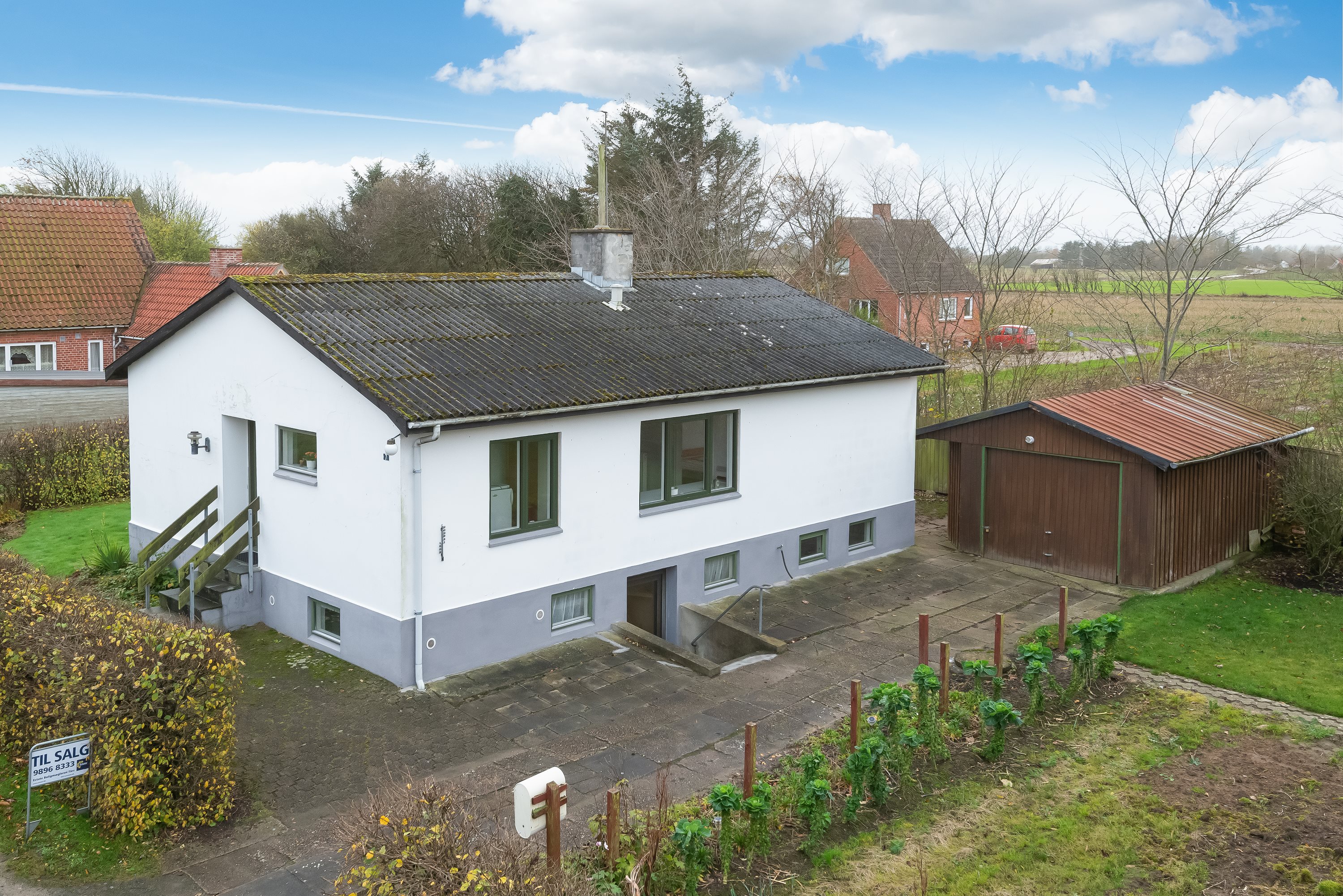 Fint og indflytningsklart hus med udsigt ud over de åbne marker. Huset er beliggende på en lille stikvej i mindre landsby og er i to plan og hvad enten, man er til super moderne, eller til det oprindelige, er her gode muligheder, da huset er klar til indflytning, men samtidig med mulighed for en gennemgribende renovering, således man kan sætte sit eget præg på indretningen.